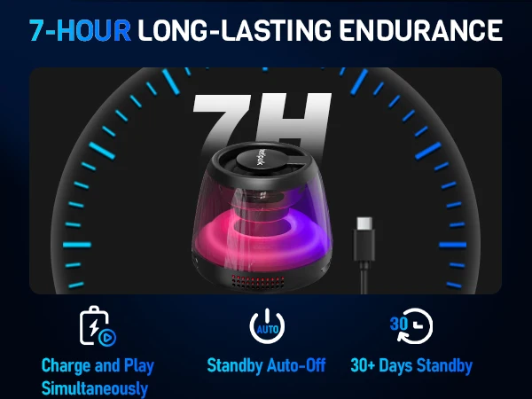 Impressive Battery Life: Powered by a high-capacity rechargeable battery, this Bluetooth speaker offers up to 7 hours of playtime at 70% volume, so you can enjoy outdoor activities without battery anxiety. If you’re watching videos indoors, it supports use while charging, ensuring uninterrupted enjoyment.