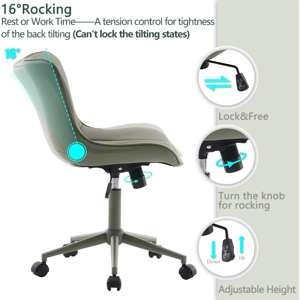 - Height Adjustable & Rocking Function – Features a 16-degree tilt angle adjustment via the black round knob under the seat. The seat height is adjustable by 4.72 inches. The total chair height ranges from 30.9 inches to 35.62 inches to accommodate different users.