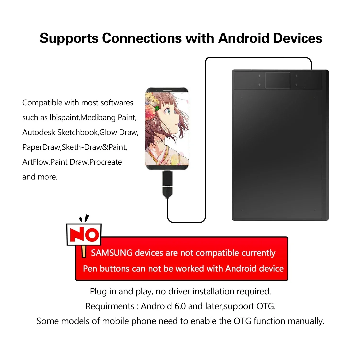 Linux and Chrome OS Support This electronic writing tablet is compatible with Chrome OS 88 or later, Linux, Android, Mac OS, and Windows. It supports various drawing software, including Corel Painter, Adobe Illustrator, Comic Studio, Manga Studio, Clip Studio, Adobe Photoshop, Gimp, Autodesk Sketch Book, Krita, Maya, and Zbrush.