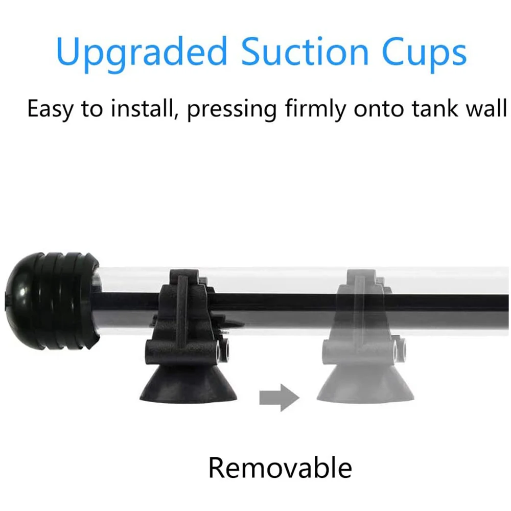 - Waterproof and Easy to Mount: Fully submersible with moveable suction cups. It can be mounted at the bottom, top, or even outside of the tank at any angle.