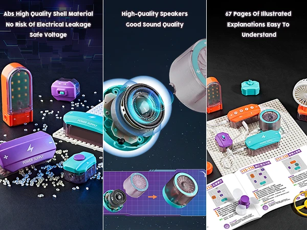 Safe Design & Detailed Instructions – The components are made of non-toxic plastic with rounded corners and use a low-voltage DC power supply to ensure children’s safety. The set comes with detailed instructions explaining how to build each circuit and the principles behind them, including basics like current, voltage, resistance, and series vs. parallel circuits.