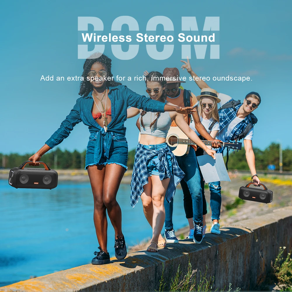 Double the sound power for a bigger party experience. Connect two DOSS Extreme Boom S speakers wirelessly for an immersive stereo soundscape and take the energy of your party to new heights.