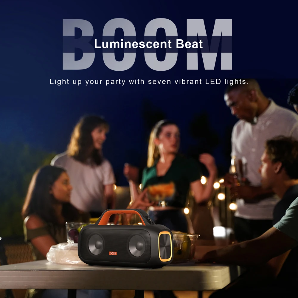 DOSS Extreme Boom S Wireless Portable Bluetooth Speaker with 60W Stereo Sound, Rich Bass, IPX6 Waterproof, 25H Playtime, Power Bank, TWS, LED Lights, Outdoor for Camping, Beach, Pool.