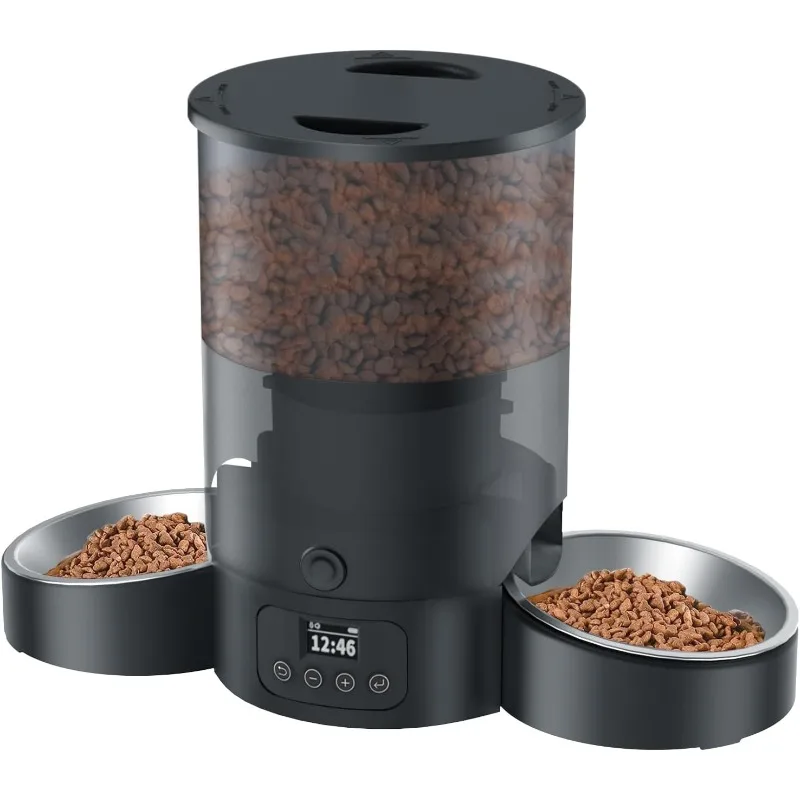 - Dual-Side Balanced Feeding: The Automatic cat feeder for two cats ensures even distribution of pet food on both sides, eliminating any uneven feeding. Its dual feeding system creates a peaceful dining atmosphere for your pets, removing food competition concerns.