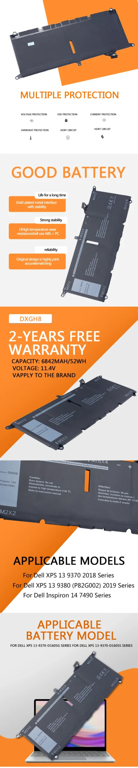 DXGH8 Battery for Dell XPS 13 & Inspiron 7390