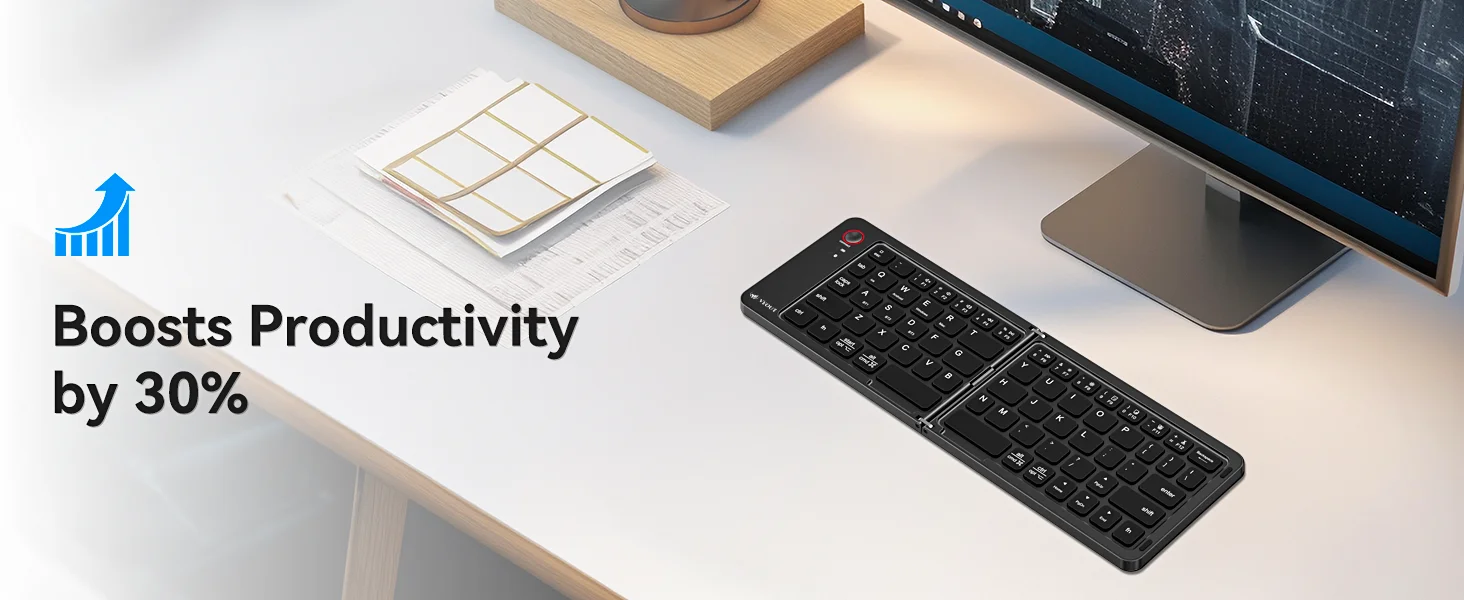 Experience seamless productivity wherever you go with this compact, foldable Bluetooth keyboard. Designed for modern professionals, remote workers, and digital nomads, this keyboard combines portability with performance to help boost your workflow by up to 30%.