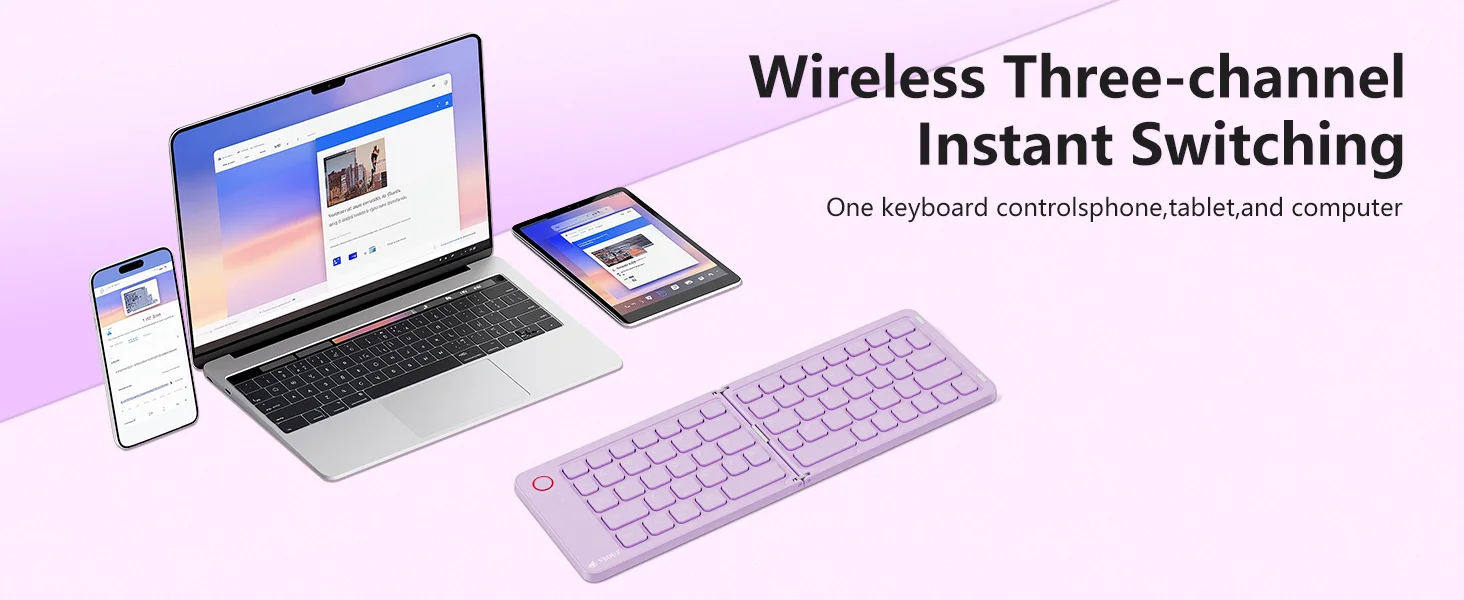 - Tri-Channel Connectivity: Switch between three devices – phone, tablet, and laptop – with a single button. Ideal for multitaskers and hybrid workers.