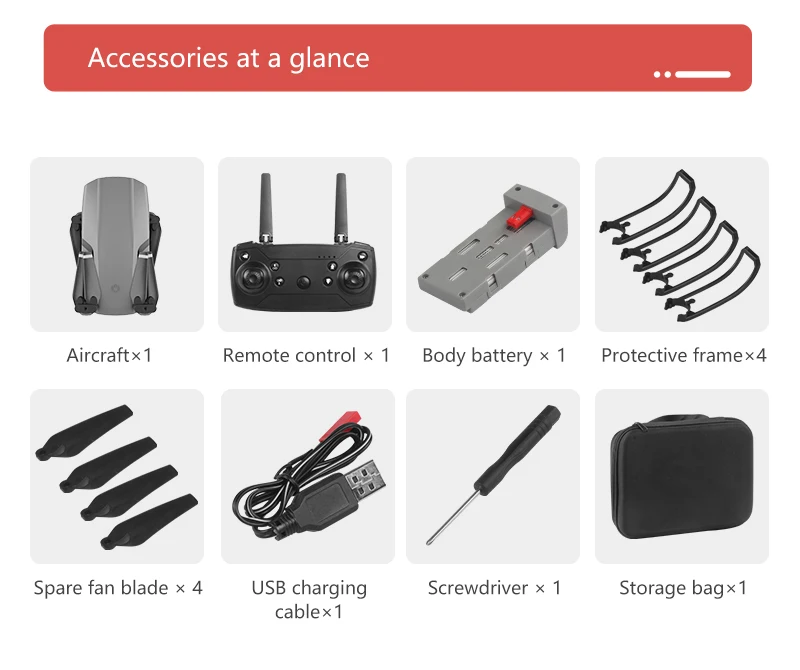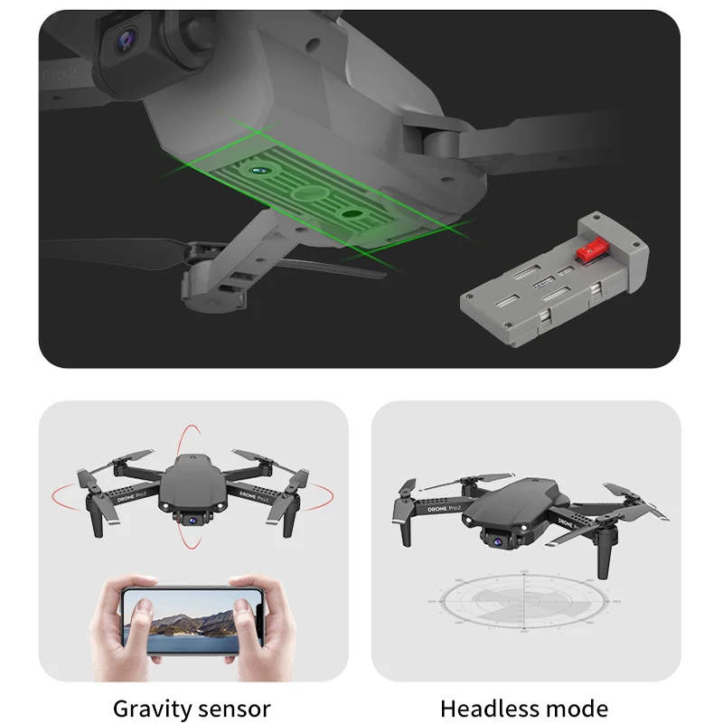 - Up/down, forward/backward, left/right turn, side flight, LED lights, headless mode, one-key automatic return, altitude hold mode, WiFi FPV