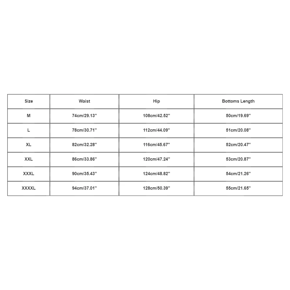 - M: Waist 74cm/29.13″, Hip 108cm/42.52″, Length 50cm/19.69″
