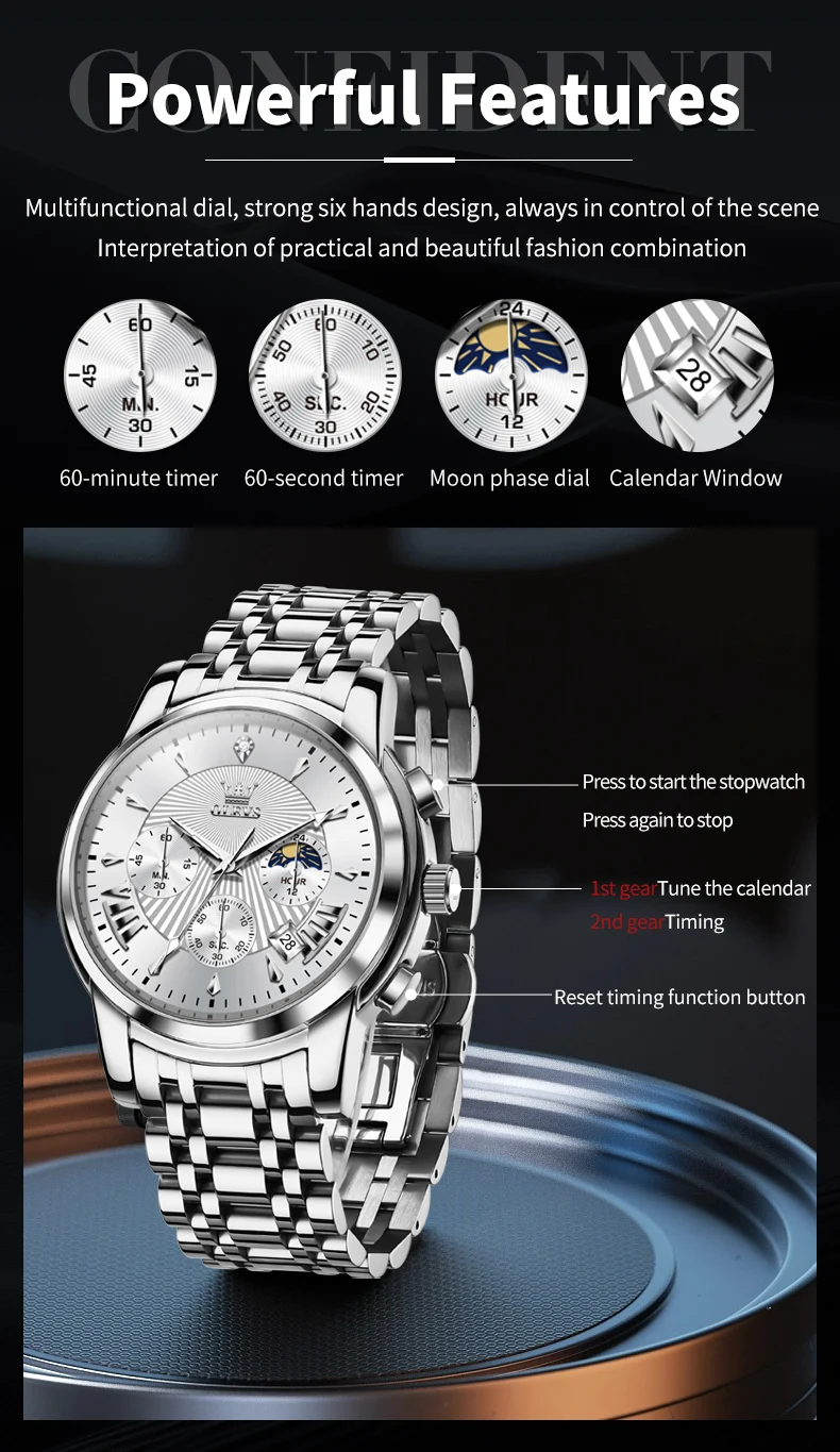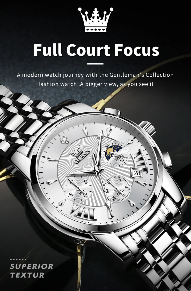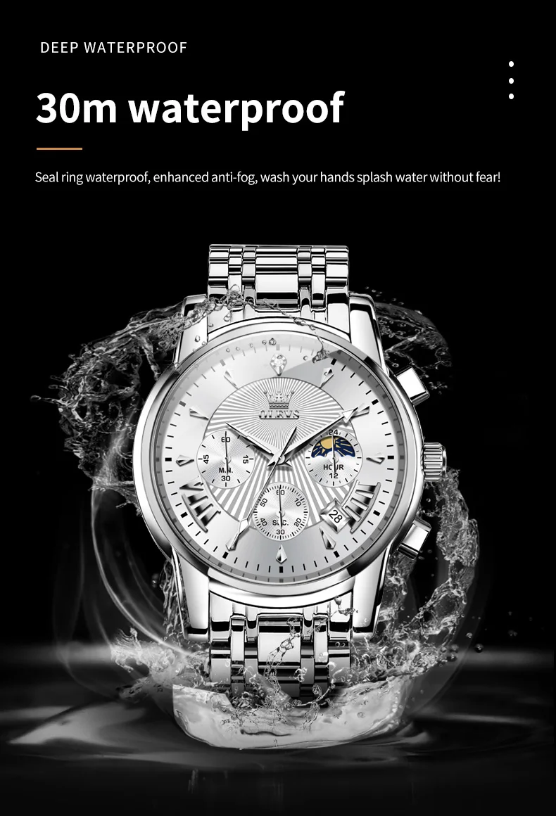 Elegant OLEVS Moon Phase Quartz Chrono Watch