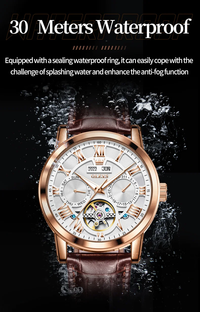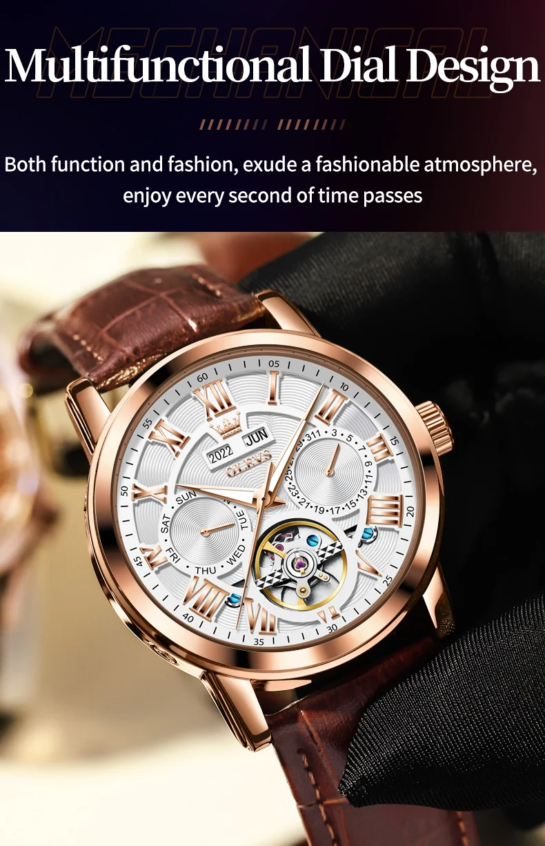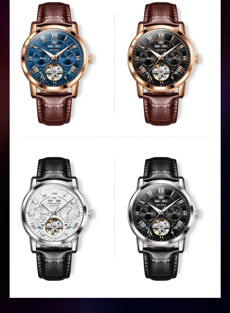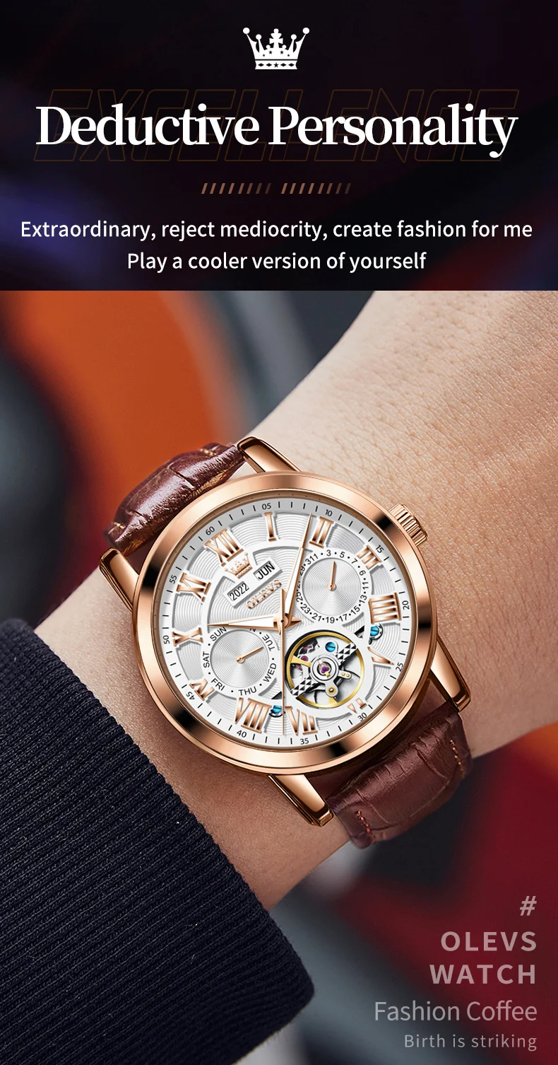 Elevate your wristwear with this automatic watch that combines functionality with aesthetic appeal. The OLEVS Mechanical Watch is not just an accessory; it’s an investment in quality, style, and precision, making it a must-have for those who value the essence of time and the beauty of mechanical innovation.