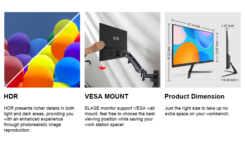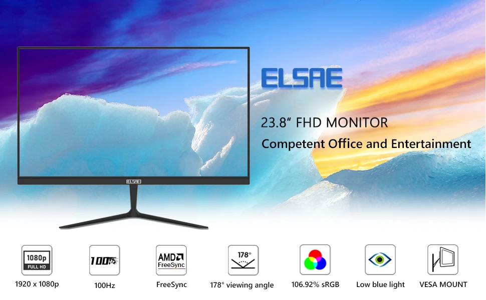 ELSAE 24 Inch 100Hz HDR IPS PC Monitor Frameless