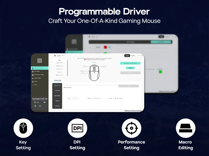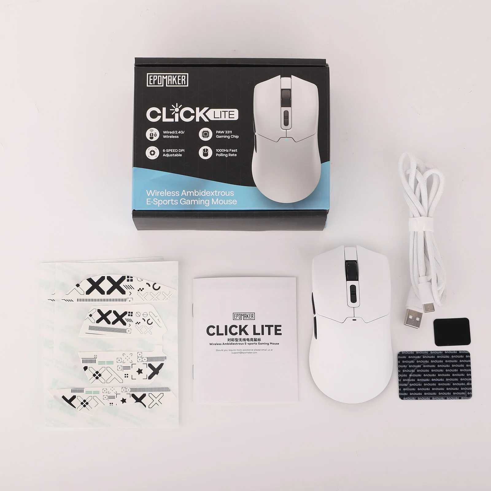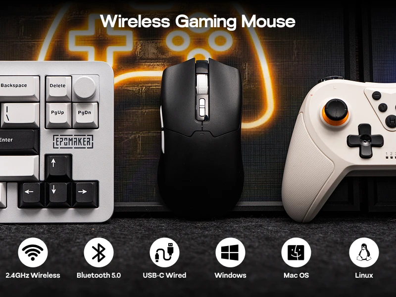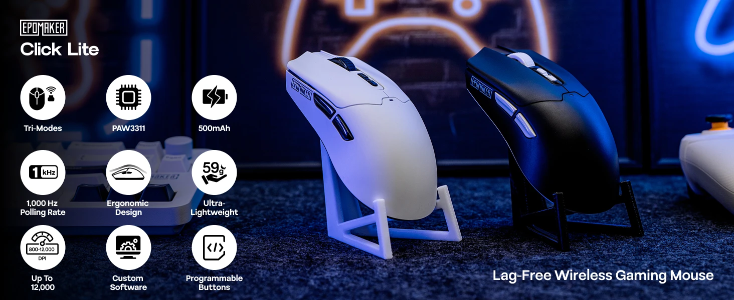 Upgrade your setup with the Click Lite wireless gaming mouse by Epomaker. Built for accurate control and flexible daily use, it uses a PAW3311 sensor with up to 24000 DPI and tri-mode connectivity so you can switch between devices without slowing down. Five programmable buttons help you map shortcuts for games, work, or creator tasks, and the rechargeable design keeps you moving without constant battery swaps.