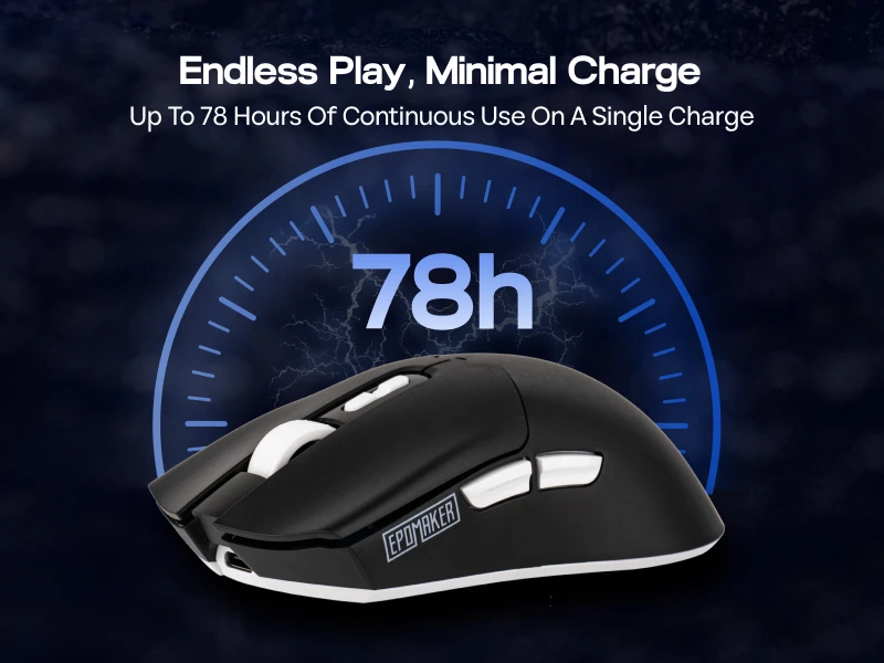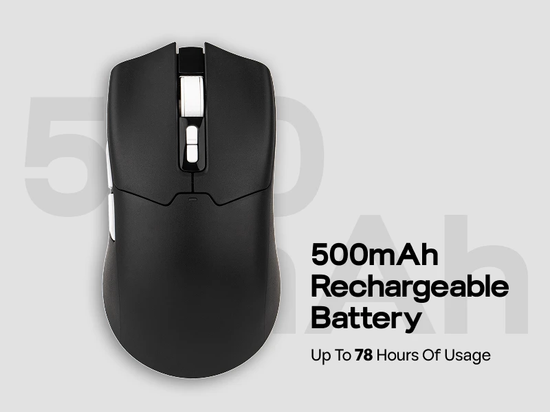The built-in 500mAh battery is listed for up to 78 hours of use per charge, helping you stay focused through long workdays and gaming sessions.