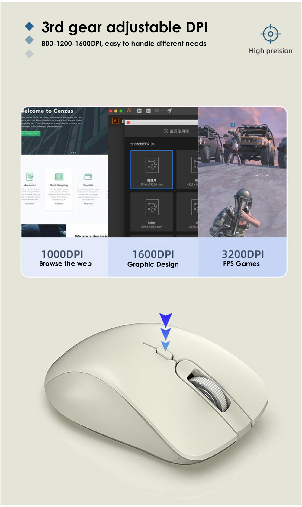 - Provides 3 adjustable DPI settings (800, 1200, 1600) to cater to different needs.