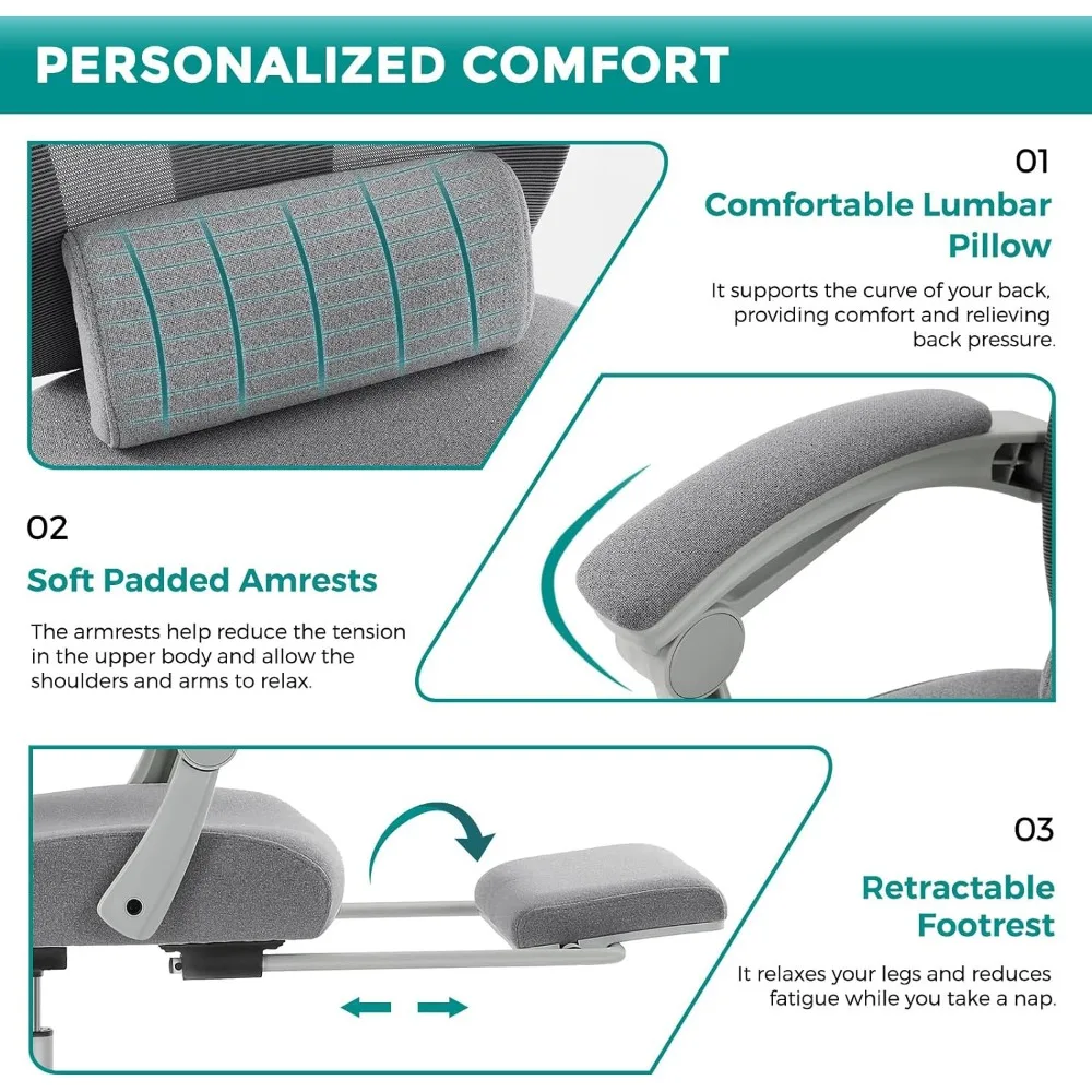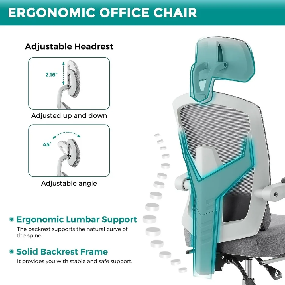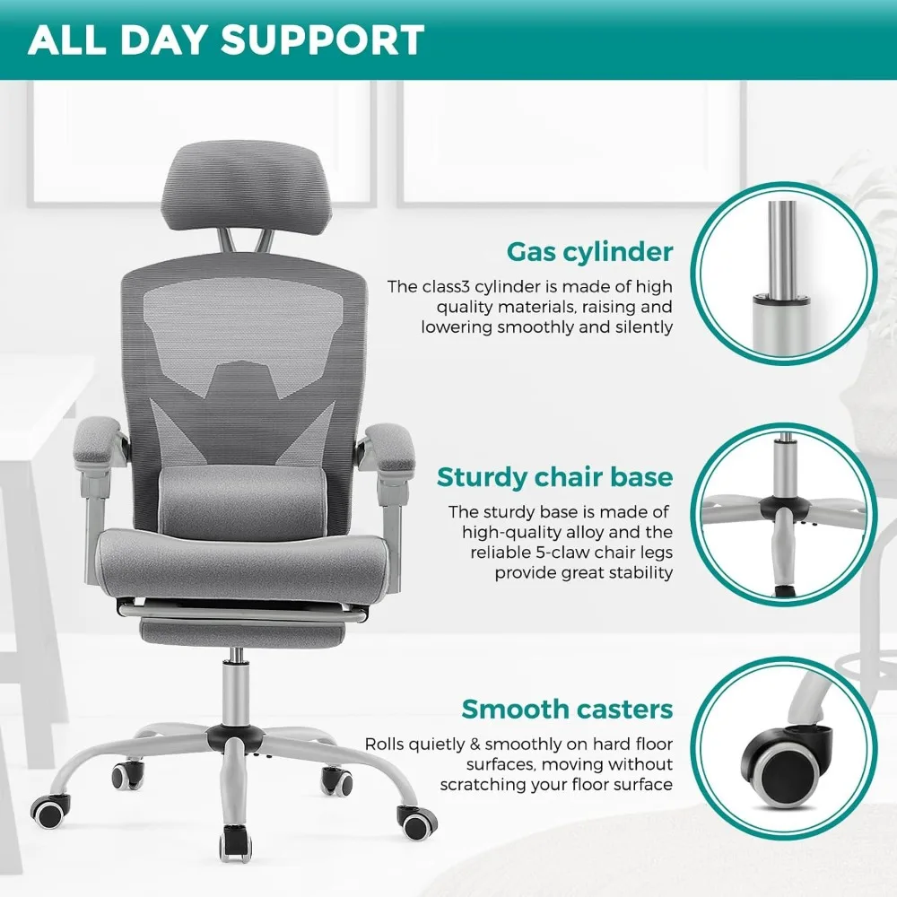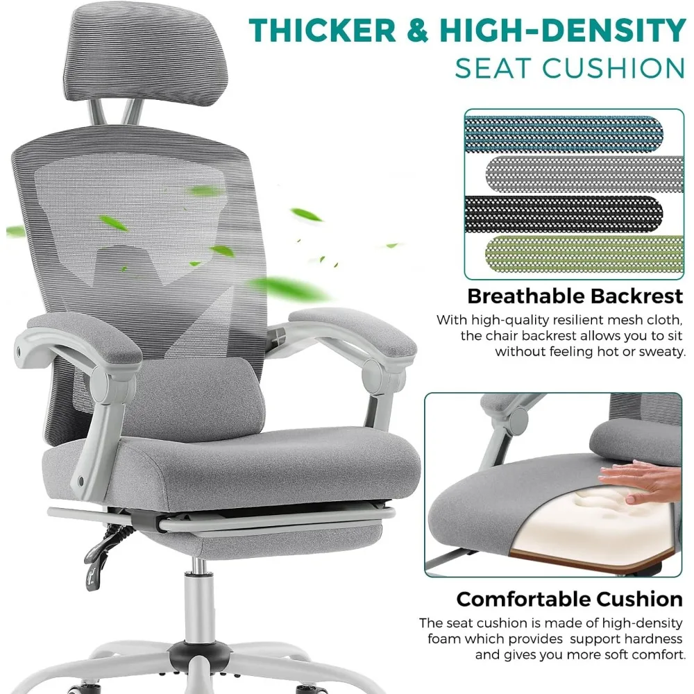 Ergonomic Gaming Chair with Footrest, Grey