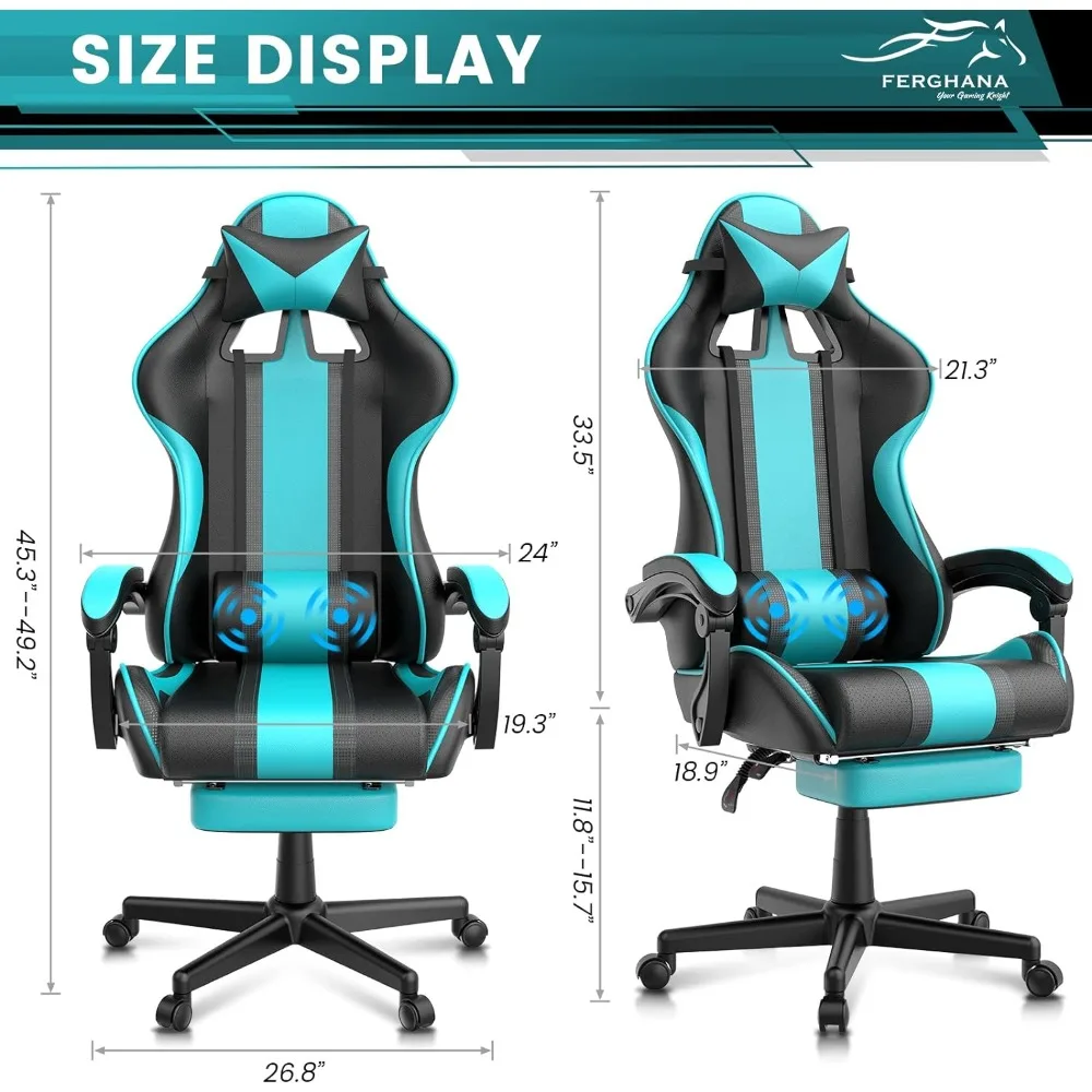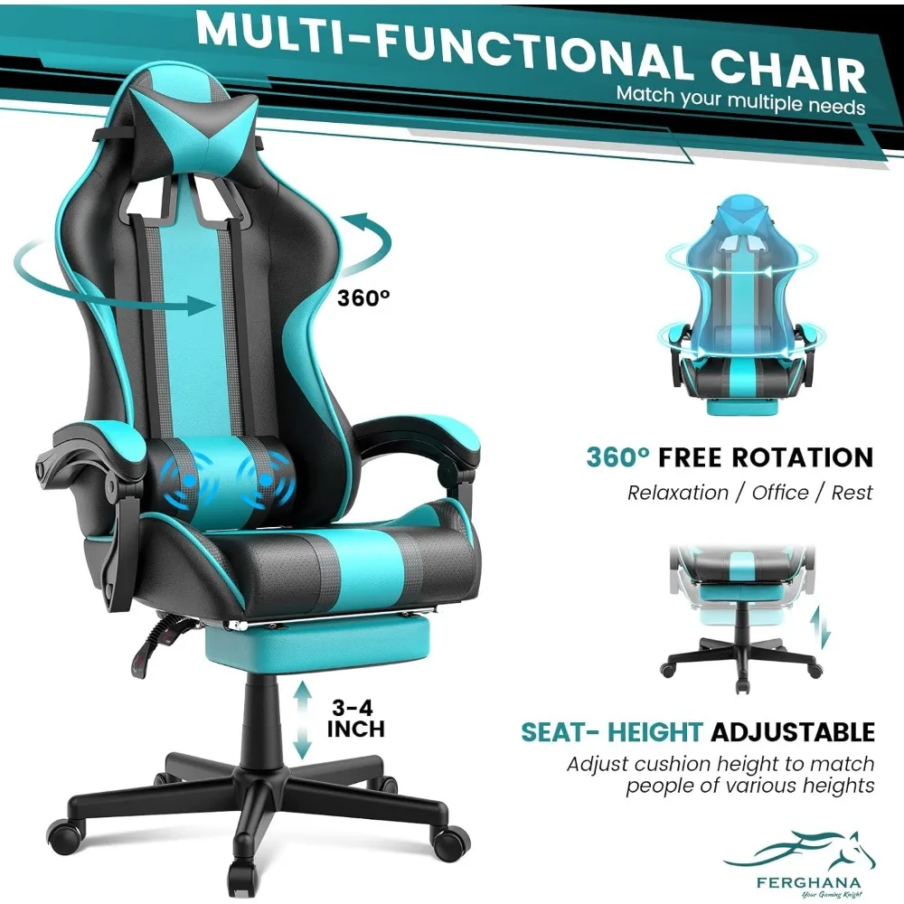 Ergonomic Gaming Chair: The Ferghana Gaming Chair is designed to conform to the human spine curve. It features a wrapped backrest, headrest, and lumbar pillow that align with the player’s body curve. This design effectively alleviates back pressure, allowing players to focus more during gaming sessions.