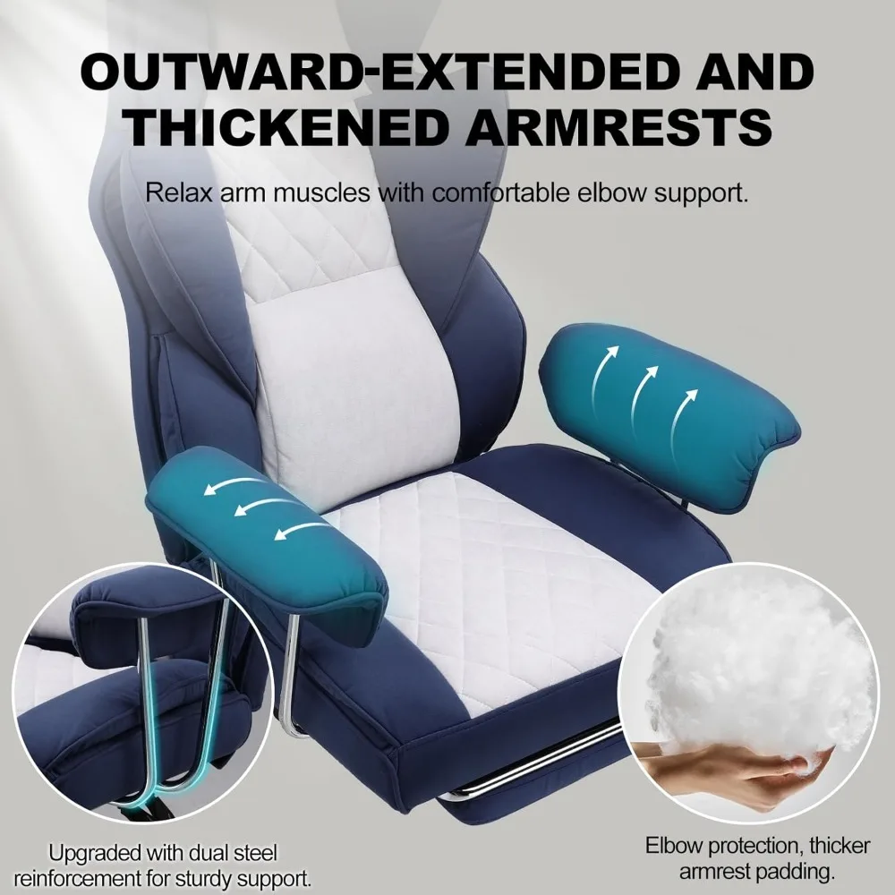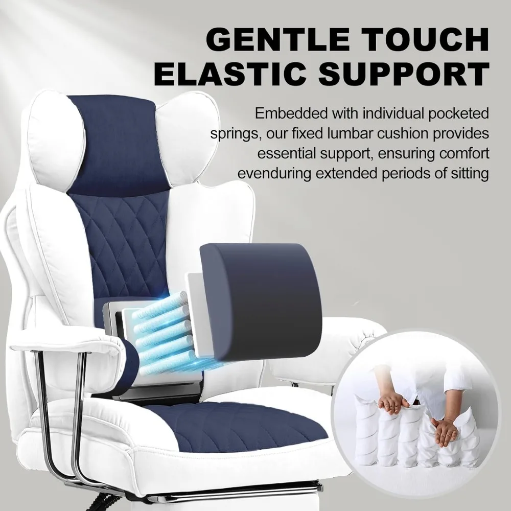 - Sofa-like Seat: The executive chair features a pocket spring lumbar support for elasticity and heat dissipation during prolonged sitting. The widened seat, free of restricting side wings, along with an adjustable footrest, allows comfortable seating in any position. It’s as casual and free as sitting on your sofa.