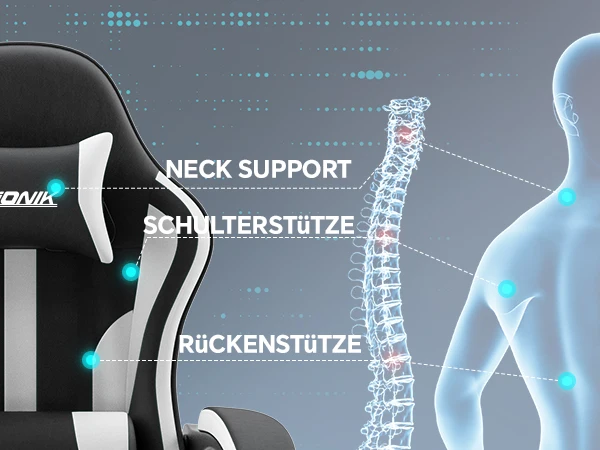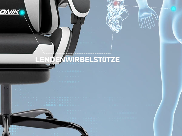 Ergonomic Design: An ergonomic game chair can help reduce fatigue caused by sitting for long periods by following the curves of the human body. The back of the chair is designed to fit the spine, providing support and relaxation from the neck, shoulders, and back to the waist. The lumbar support function helps maintain the natural curve of the spine and reduce pressure buildup, improving overall comfort and user experience.
