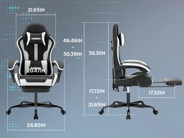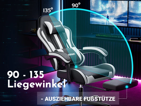 Adjustable Game Chair: This gamer chair is easy to adjust and can adapt to a variety of sitting positions and usage scenarios. The concealed retractable foot support adds comfort, and the armrests automatically adjust according to the backrest angle to help provide arm support in different sitting positions. The seat height can also be adjusted to suit different users and desk heights.
