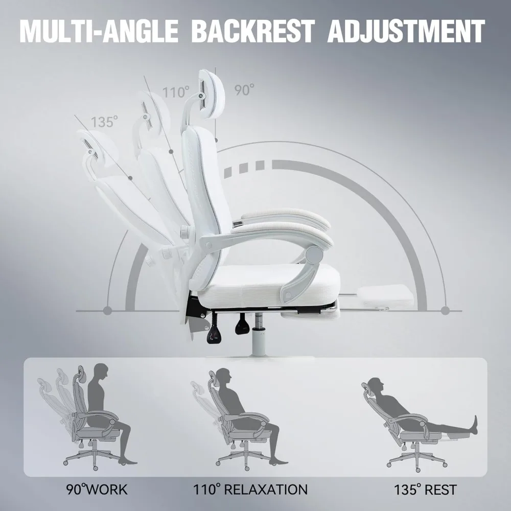 - Versatile and Sturdy Design: Enjoy seamless mobility with the smooth-rolling wheels and 360° swivel base, perfect for navigating hard floors. Built to support up to 300 pounds, this chair offers both durability and comfort. The adjustable backrest reclines up to 135°, with a retractable footrest, allowing you to find your ideal position for relaxation or focus.