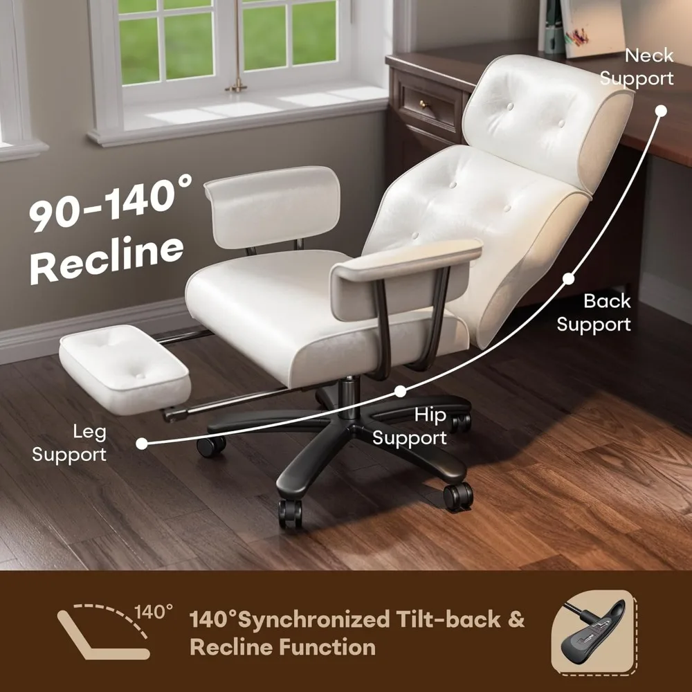 - Premium Quality: Crafted with high-grade PU leather, elastic sponge, and a strong metal base, this durable desk chair with a footrest ensures a relaxing work experience with its thickened backrest and cushion.
