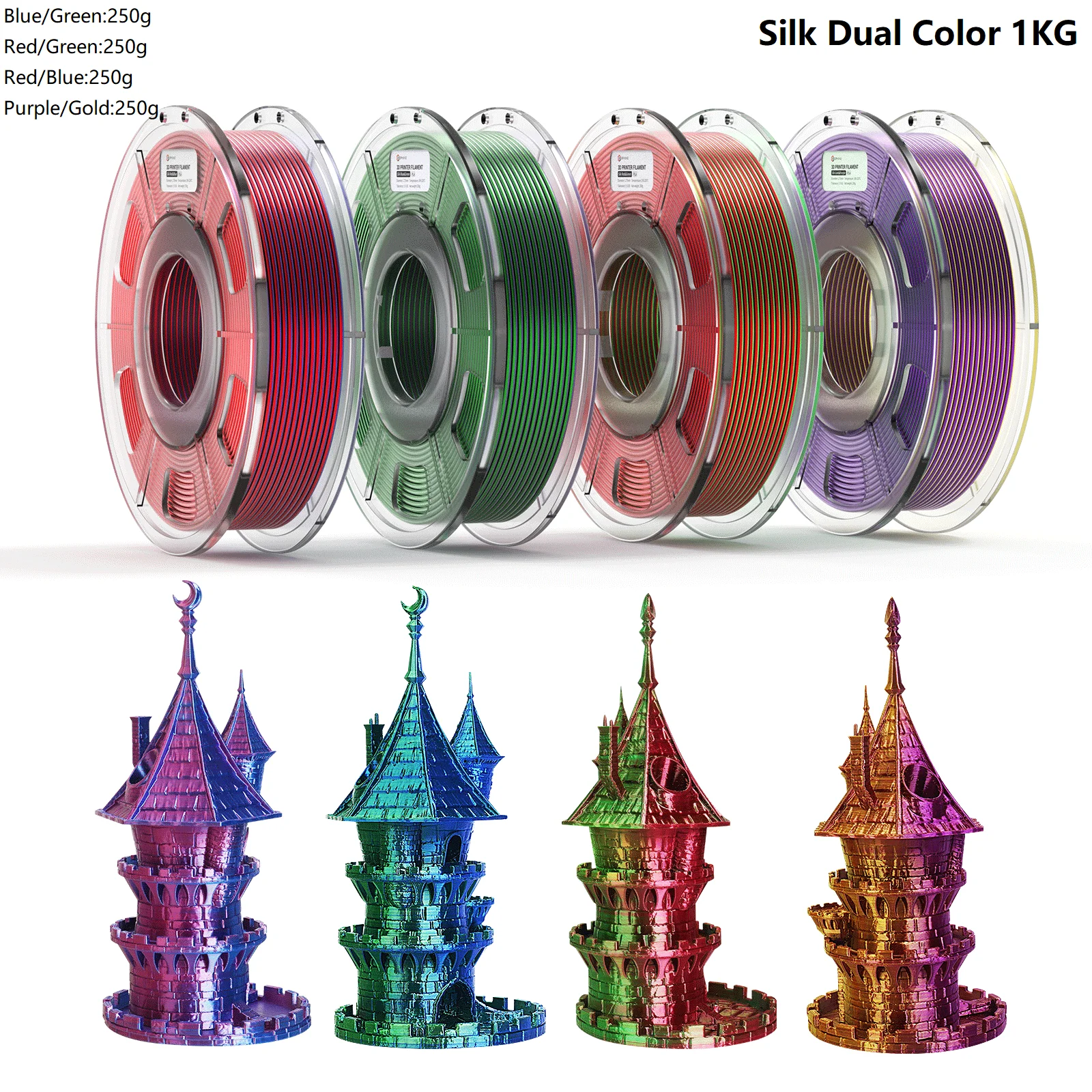 - Mesmerizing Dual Color Shift Effect: Witness your prints transform before your eyes! Our Silk Dual Color PLA filament creates a stunning, dynamic color shift depending on the viewing angle, adding extraordinary visual depth to your models. Available in rich combinations like Black & Rose Red, Black & Purple, Black & Dark Green, Black & Dark Gold, and more to perfectly “Brighten Your Imagination!”