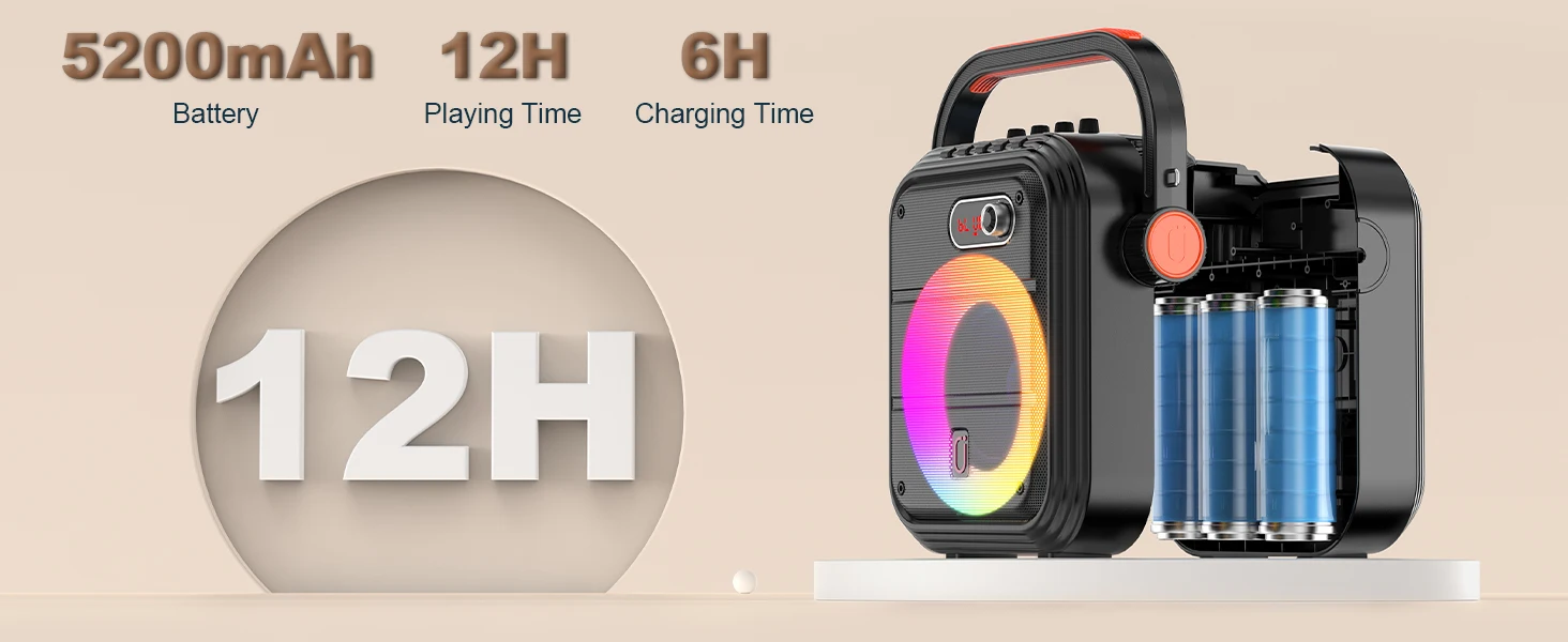 - Long-Lasting Portability & Quick Charge: Keep the party going for hours! A powerful 5200mAh built-in battery provides an impressive “12H Playing Time” at medium volume. When it’s time to recharge, it only takes a swift “6H Charging Time,” ensuring minimal downtime between performances. Designed with a comfortable handle and option for a shoulder strap, this compact (11.8″W x 13.7″H x 5.5″D) unit is incredibly convenient to carry anywhere.