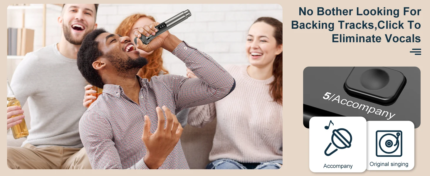 - Instant Vocal Elimination: Transform any song into a karaoke track with a single click! The “Accompany” button intelligently eliminates original vocals, leaving you with perfect backing tracks without the hassle of searching.