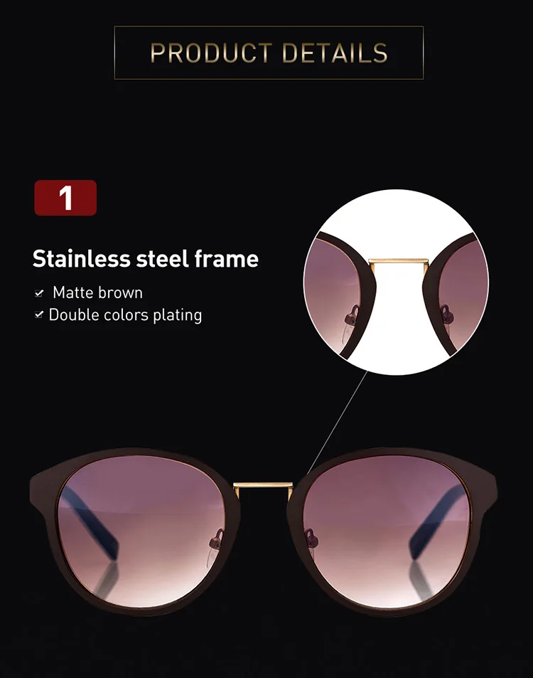 Crafted with precision, the stainless steel frame promises durability and a lightweight feel, ensuring a comfortable fit for all-day wear. The gradient brown lenses not only add a touch of mystery and allure but also provide optimal protection against UV rays, making these sunglasses a perfect accessory for any outdoor activity, whether it’s a leisurely walk in the park or a day out in the city.