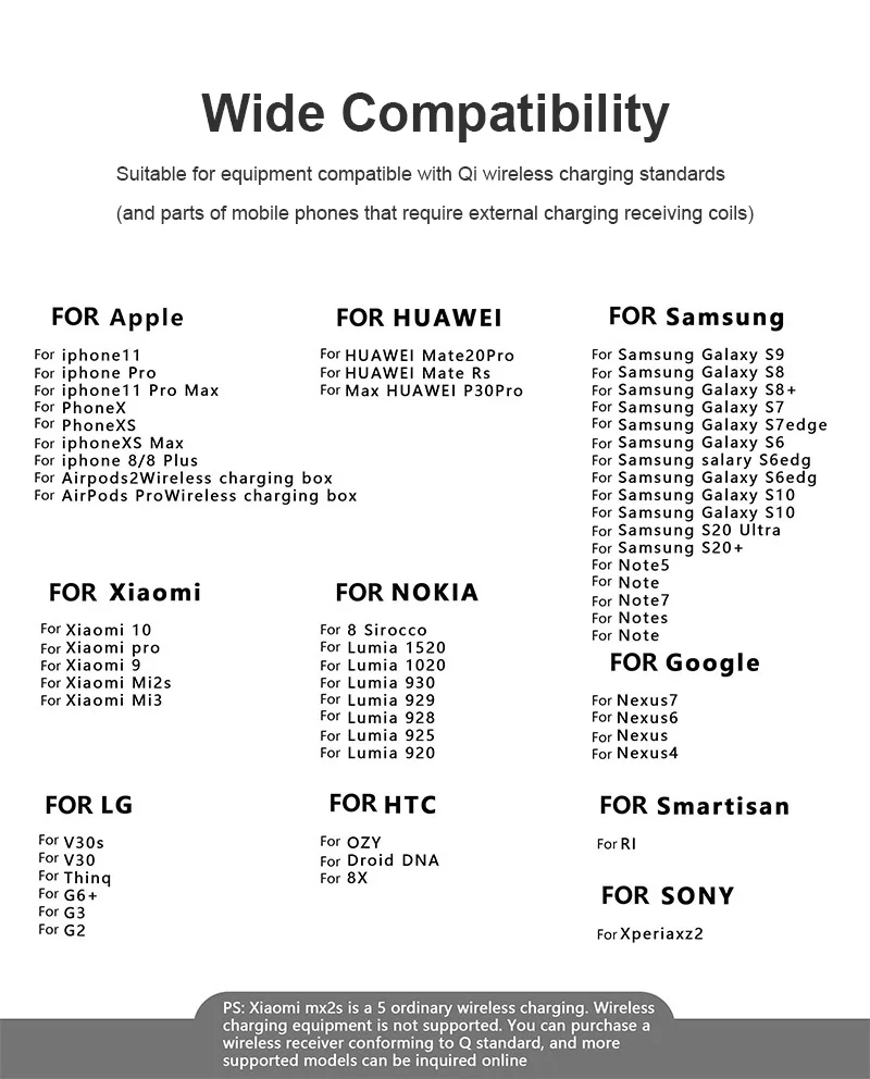 Fast Wireless Charging: This charger is capable of 10W Fast Charging for select Samsung Galaxy models. Other Qi-enabled devices will charge at standard wireless charging speeds.