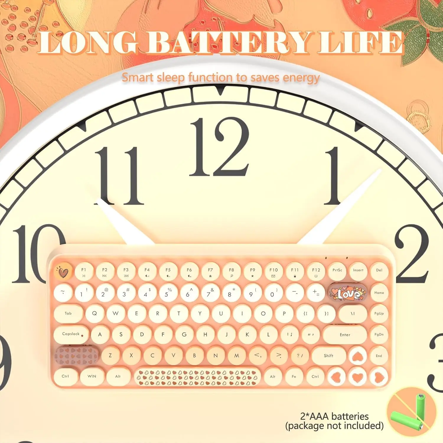 Smart power saving: After 15 minutes of inactivity, the keyboard enters sleep mode and disconnects Bluetooth to conserve power.