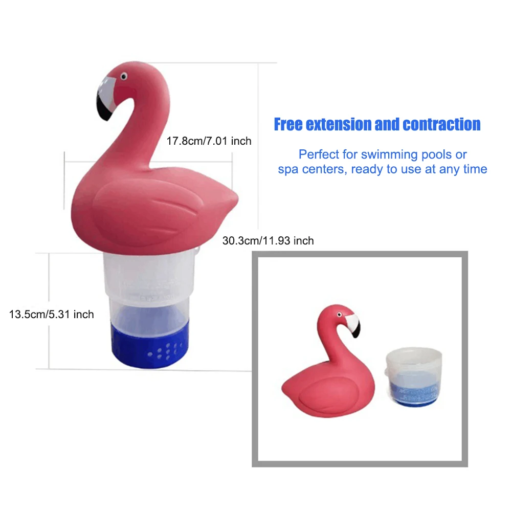 - Effortless Chlorination: Ensure your swimming pool or hot tub remains pristine with our flamingo chlorine floater. Its design allows for a consistent and effective release of chemicals, keeping your water safe and swim-ready at all times.