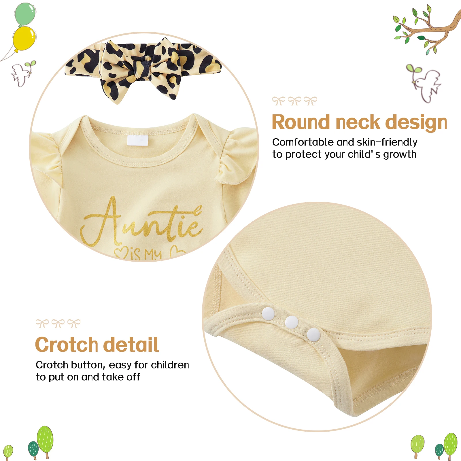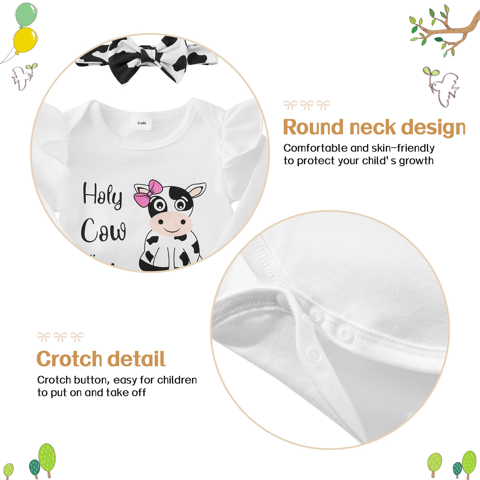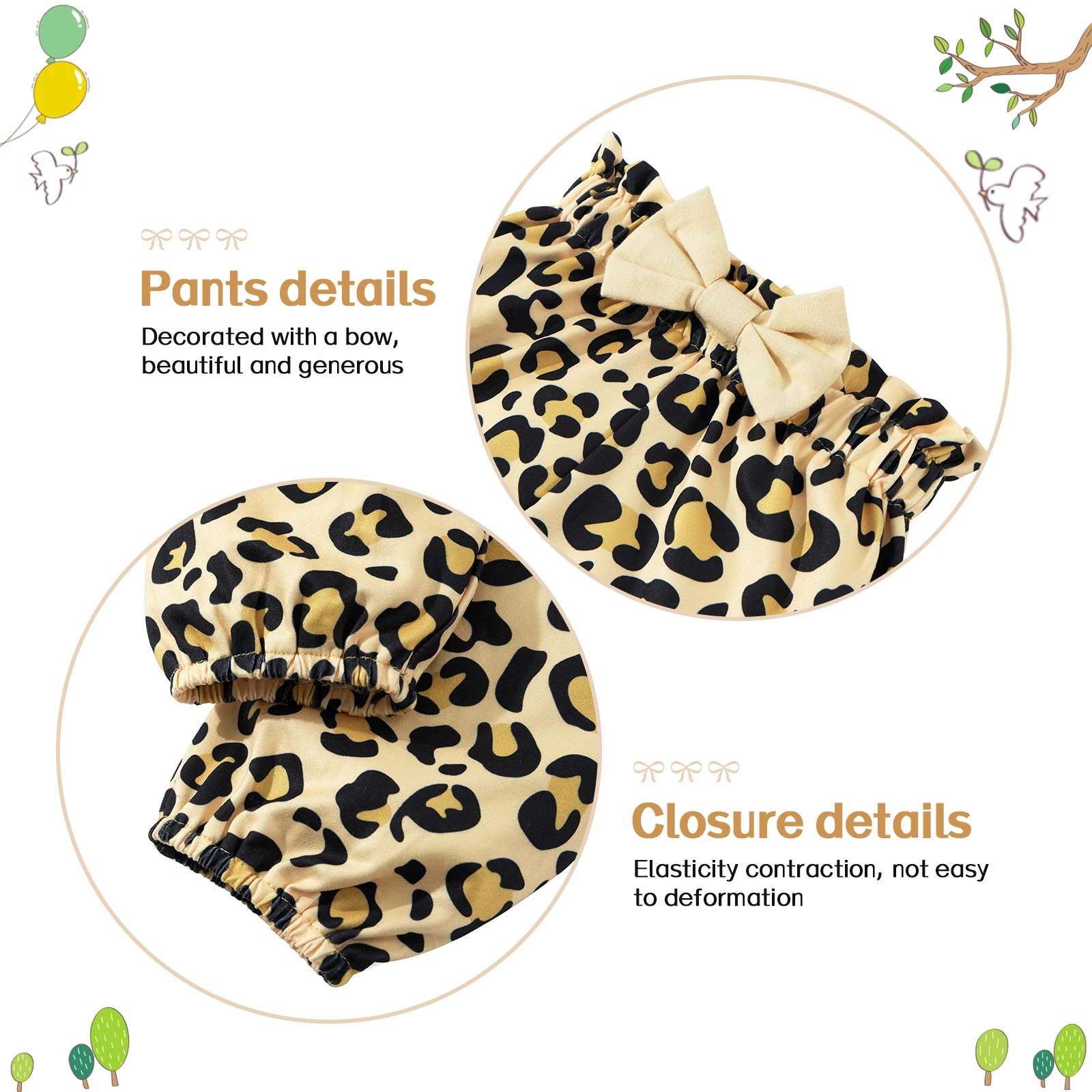 - Eyes-catching Designs: The romper is with cute ruffle design, which makes the baby girls clothes not simple; the pants are with cute bow, and cute pattern fully printed on the pants; this headband is designed to match the pants, same leopard pattern or same flowers pattern.