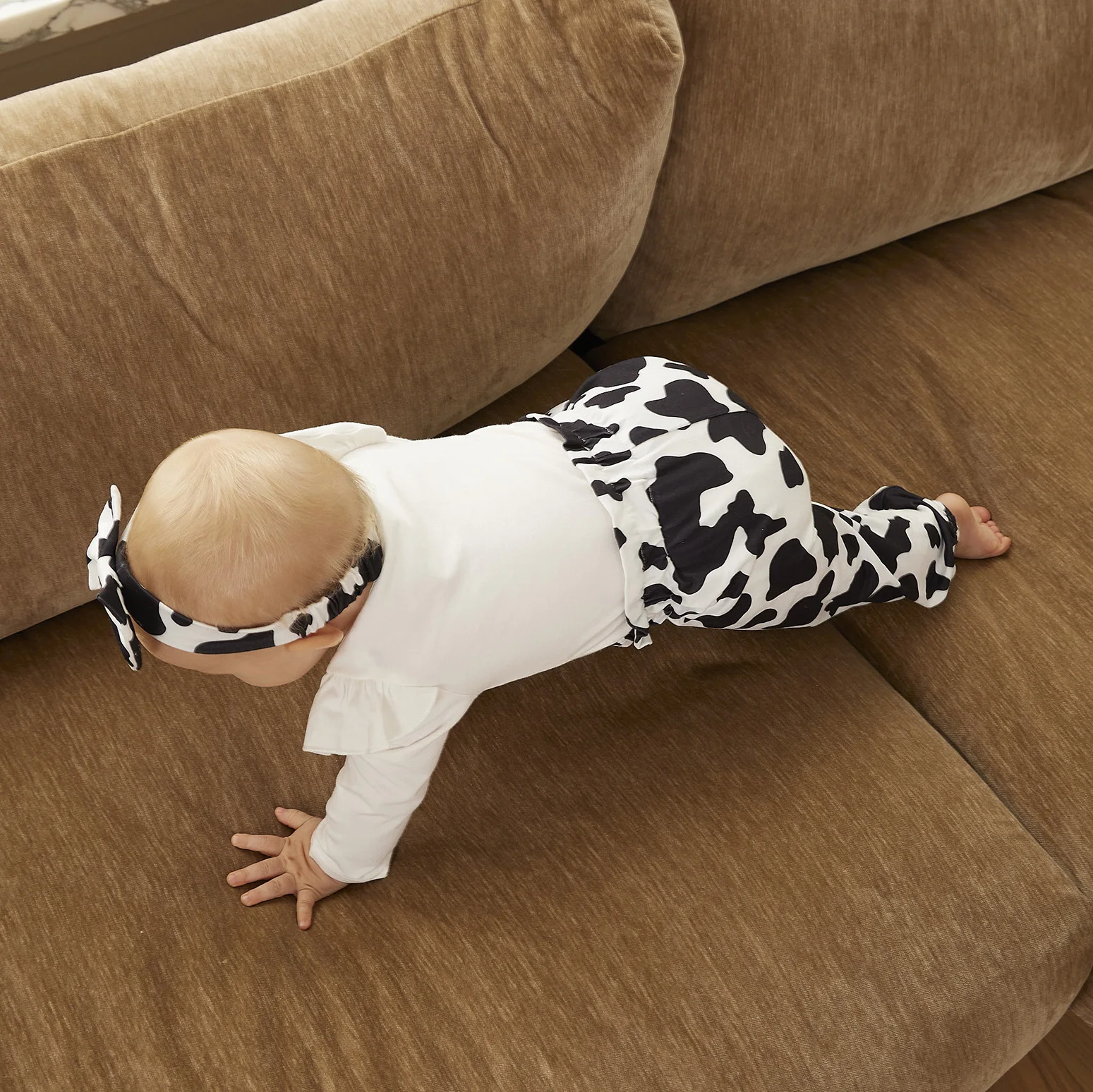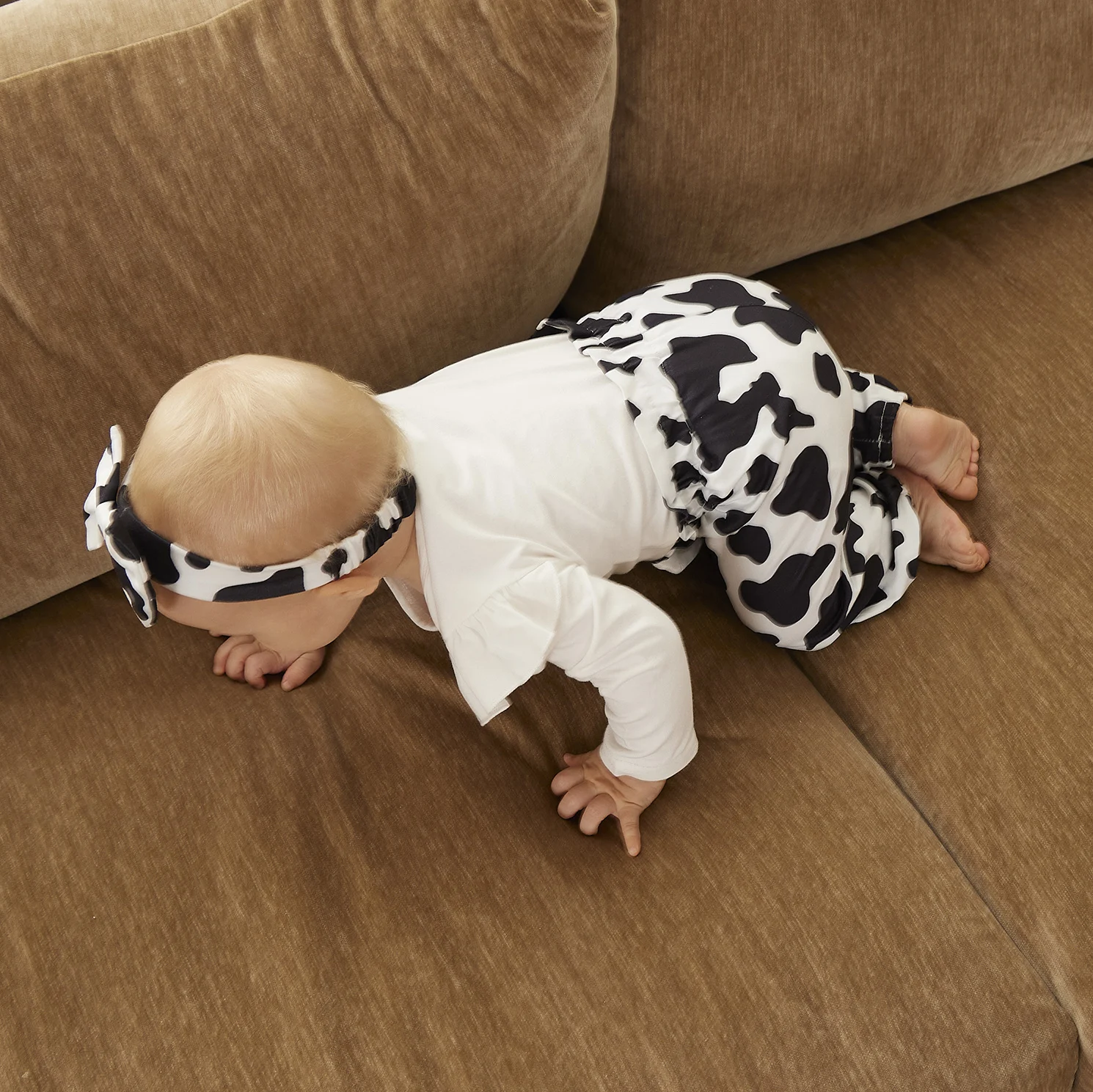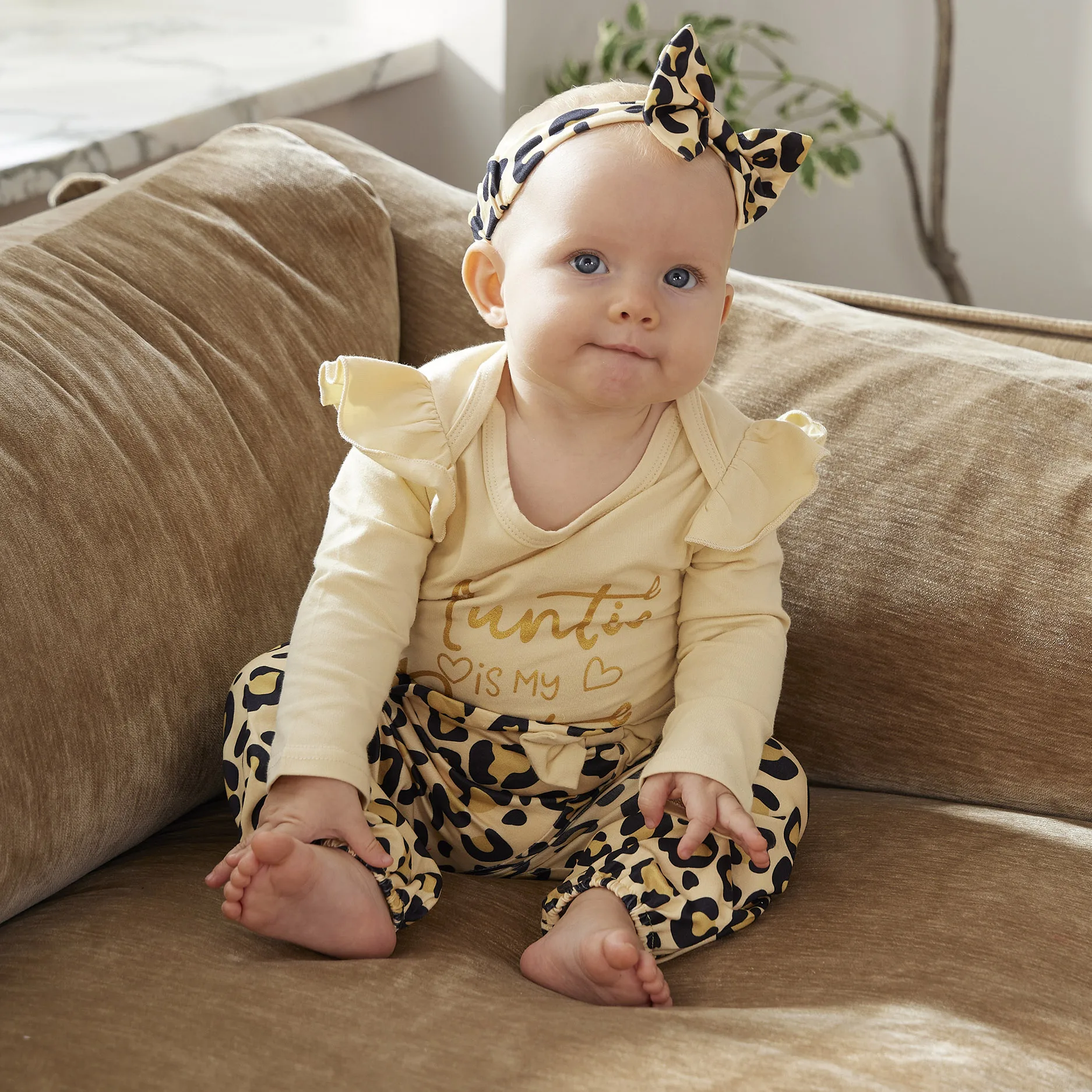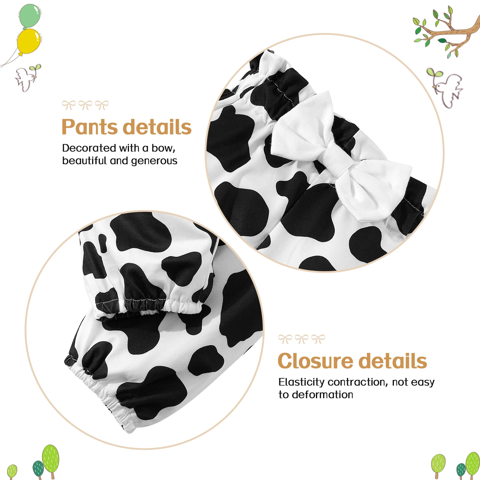 - Eyes-catching Designs: The romper is with cute ruffle design, which makes the baby girls clothes not simple; the pants are with cute bow, and cute pattern fully printed on the pants; this headband is designed to match the pants, same leopard pattern or same flowers pattern.