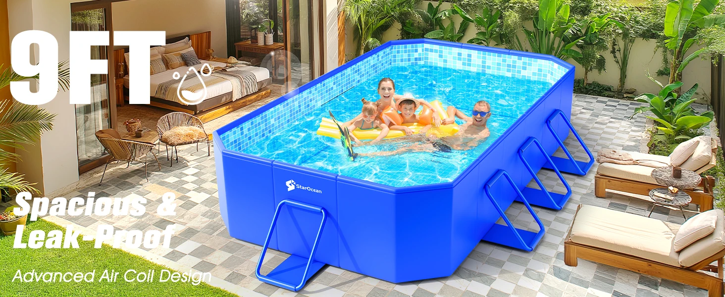 - Spacious and Family-Friendly: Measuring 106″ x 66″ x 20″ with a volume of 573 gallons, this non-inflatable pool comfortably fits two adults and three to four children. It’s perfect for water games or relaxing in the sun with loved ones.