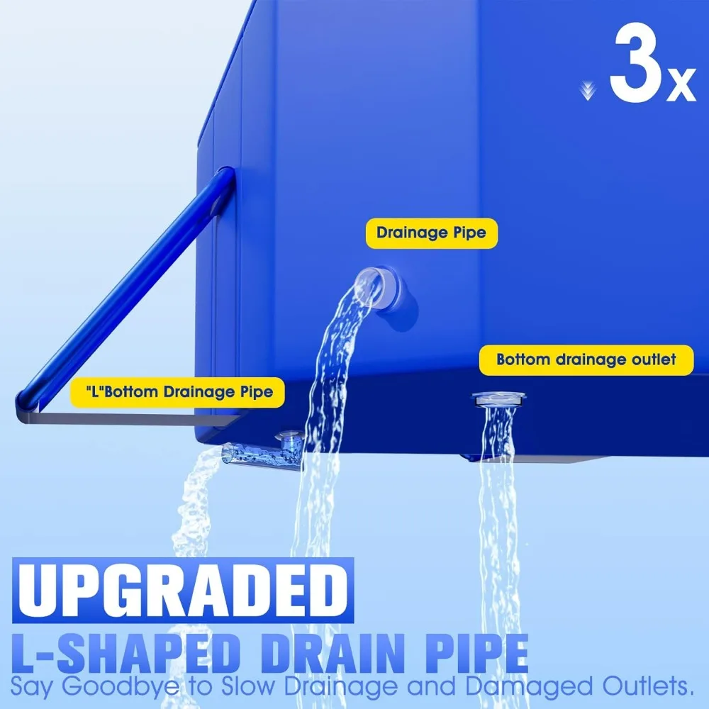 - Effortless Storage & Quick Drainage: Folding the pool takes just four steps, reducing its size by 75%. The L-shaped drainage holes drain water 32% faster than traditional models, with a maximum flow rate of 19 gallons per minute. No need for inflation—just unfold and enjoy.