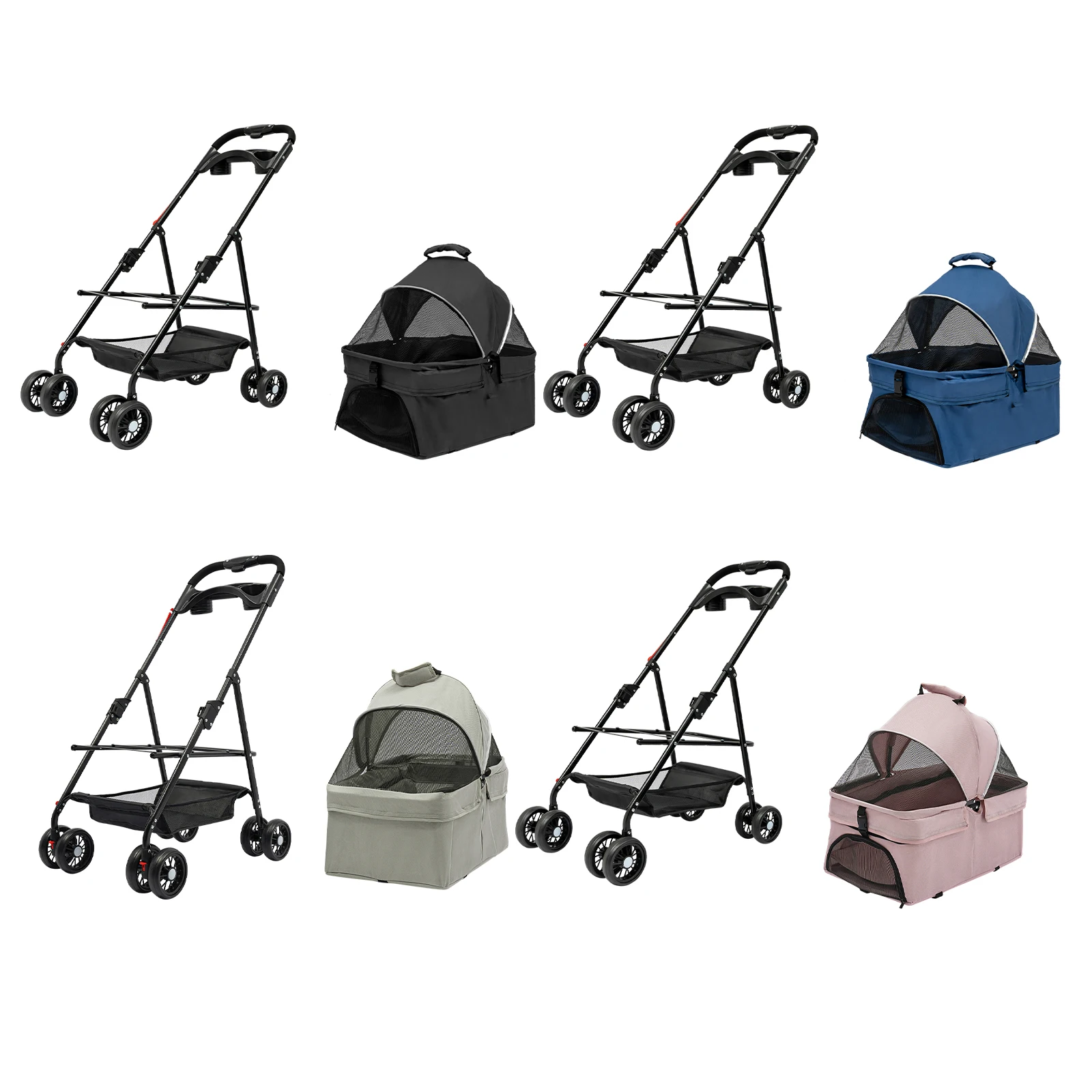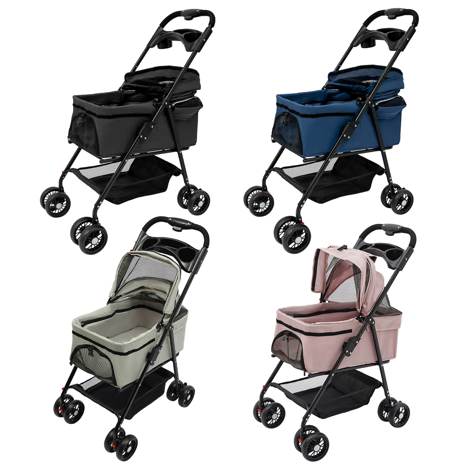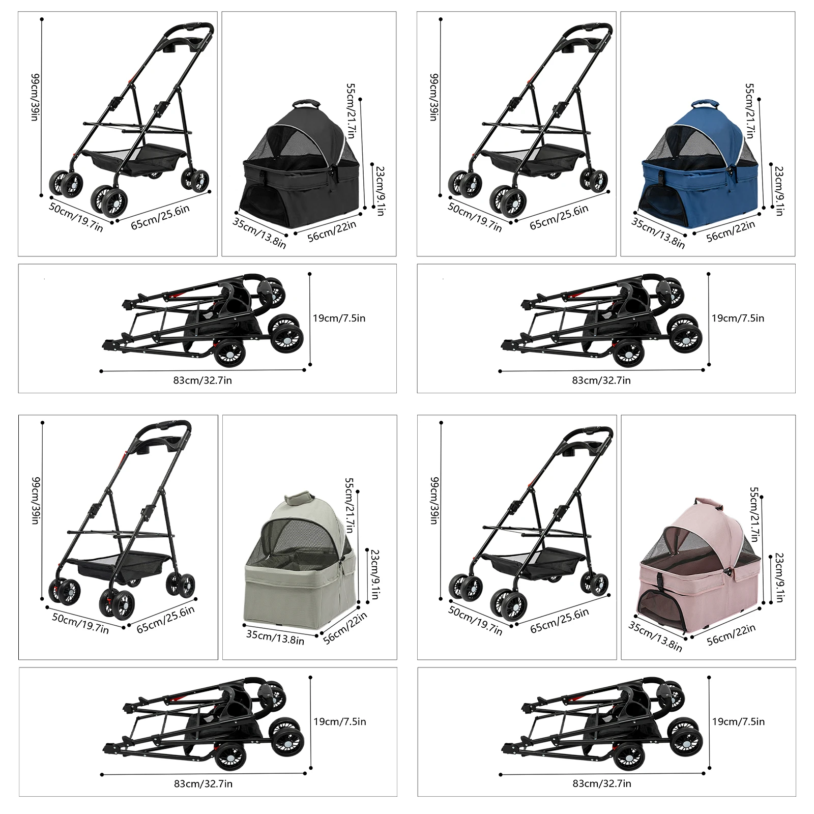 Foldable Pet Stroller with Detachable Basket and Shock Absorption