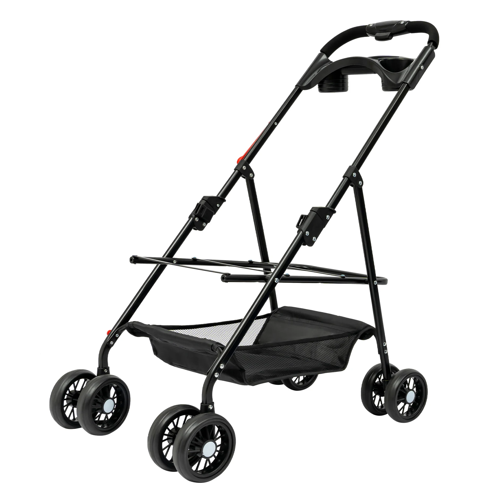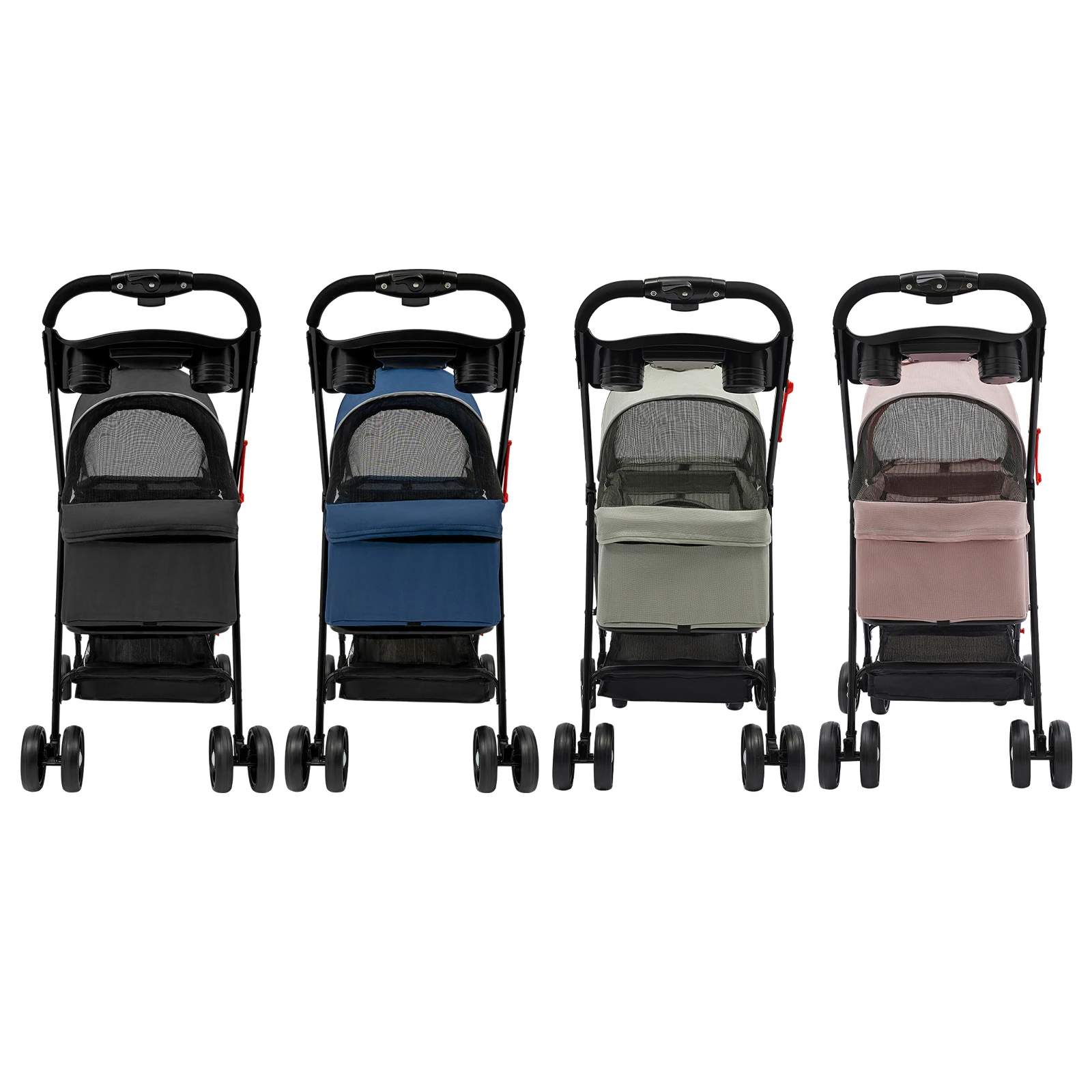 - Flexible Mobility: Four sturdy wheels and a comfortable handle let it move easily over different surfaces. The front wheels have shock absorption, and the rear wheels have a braking function to keep the stroller in place.