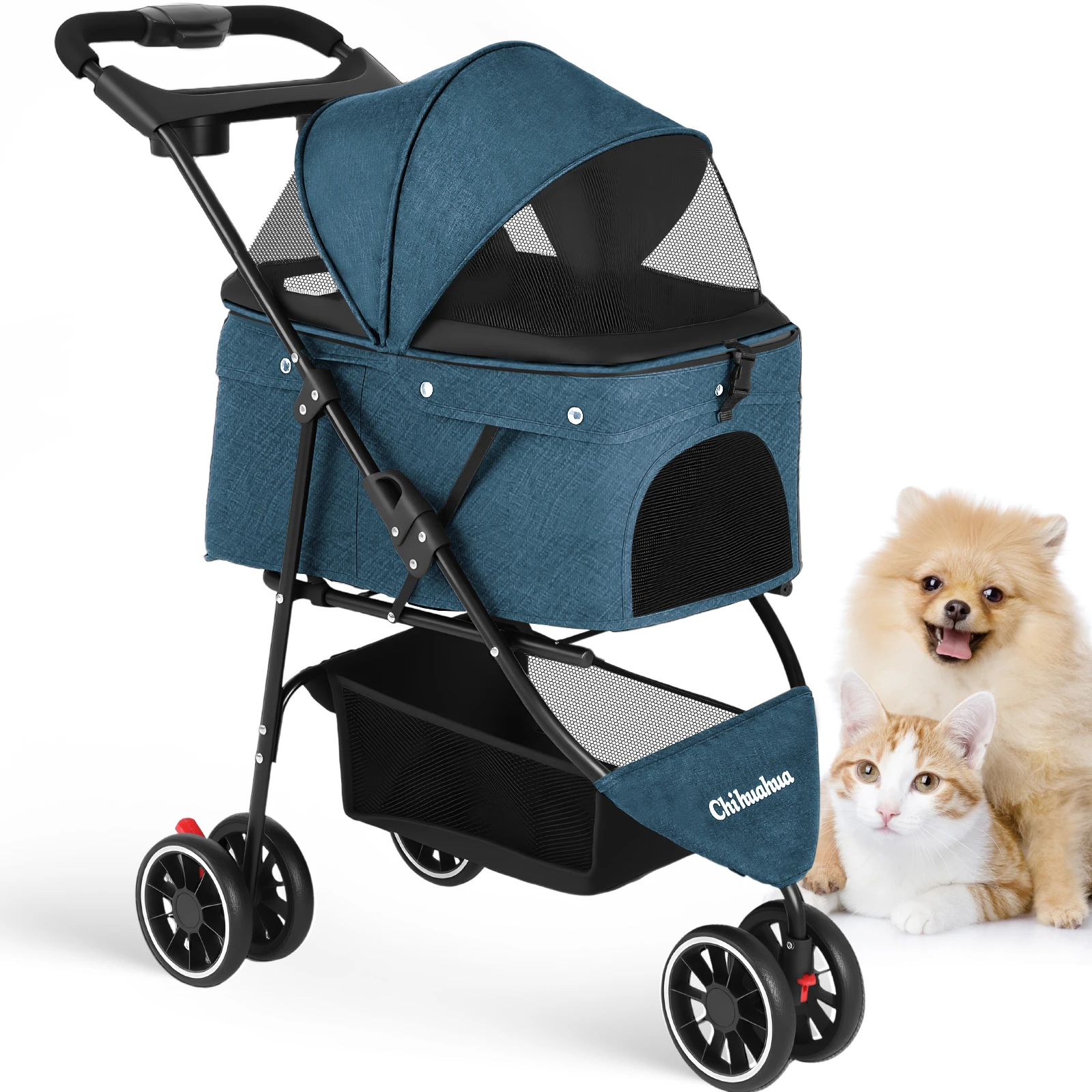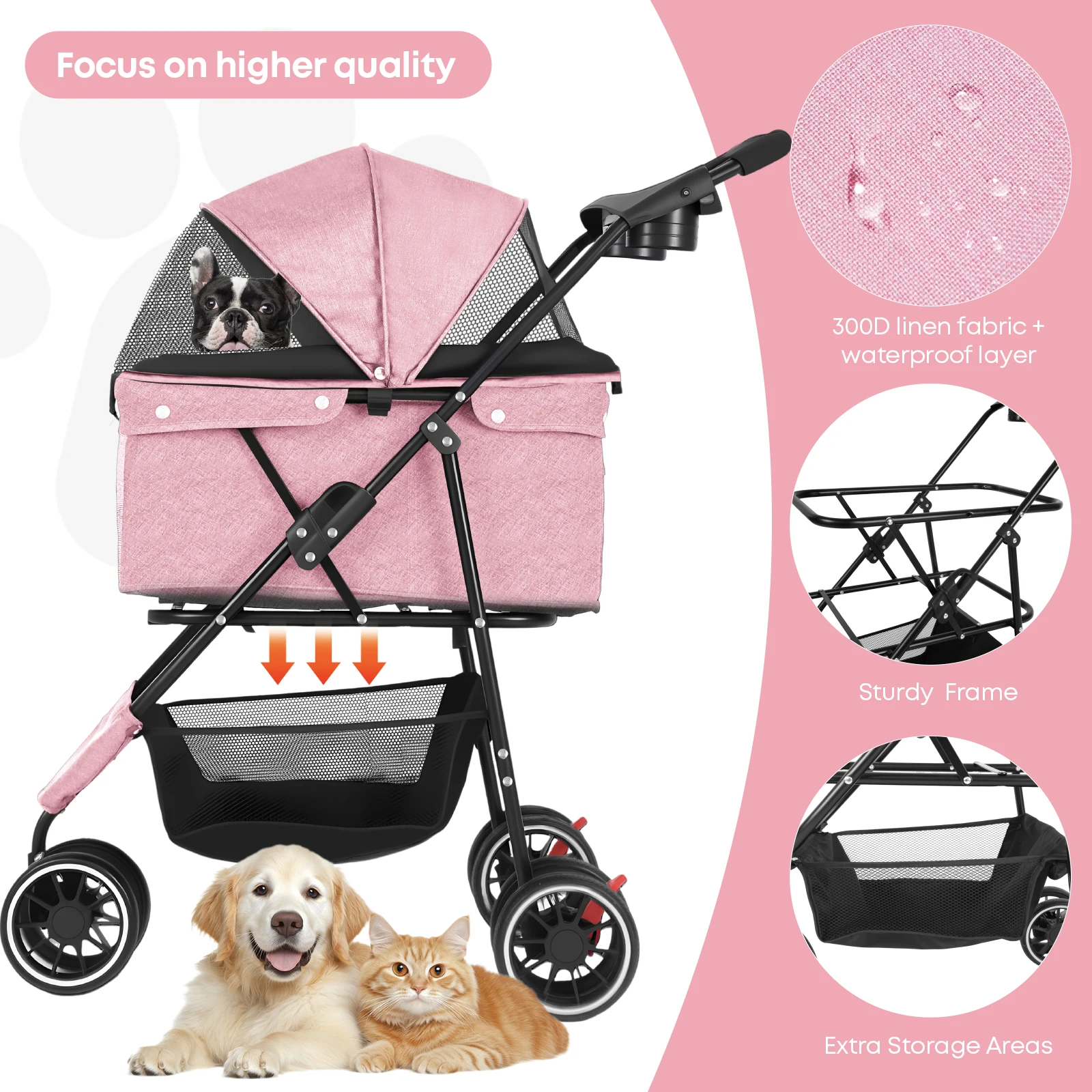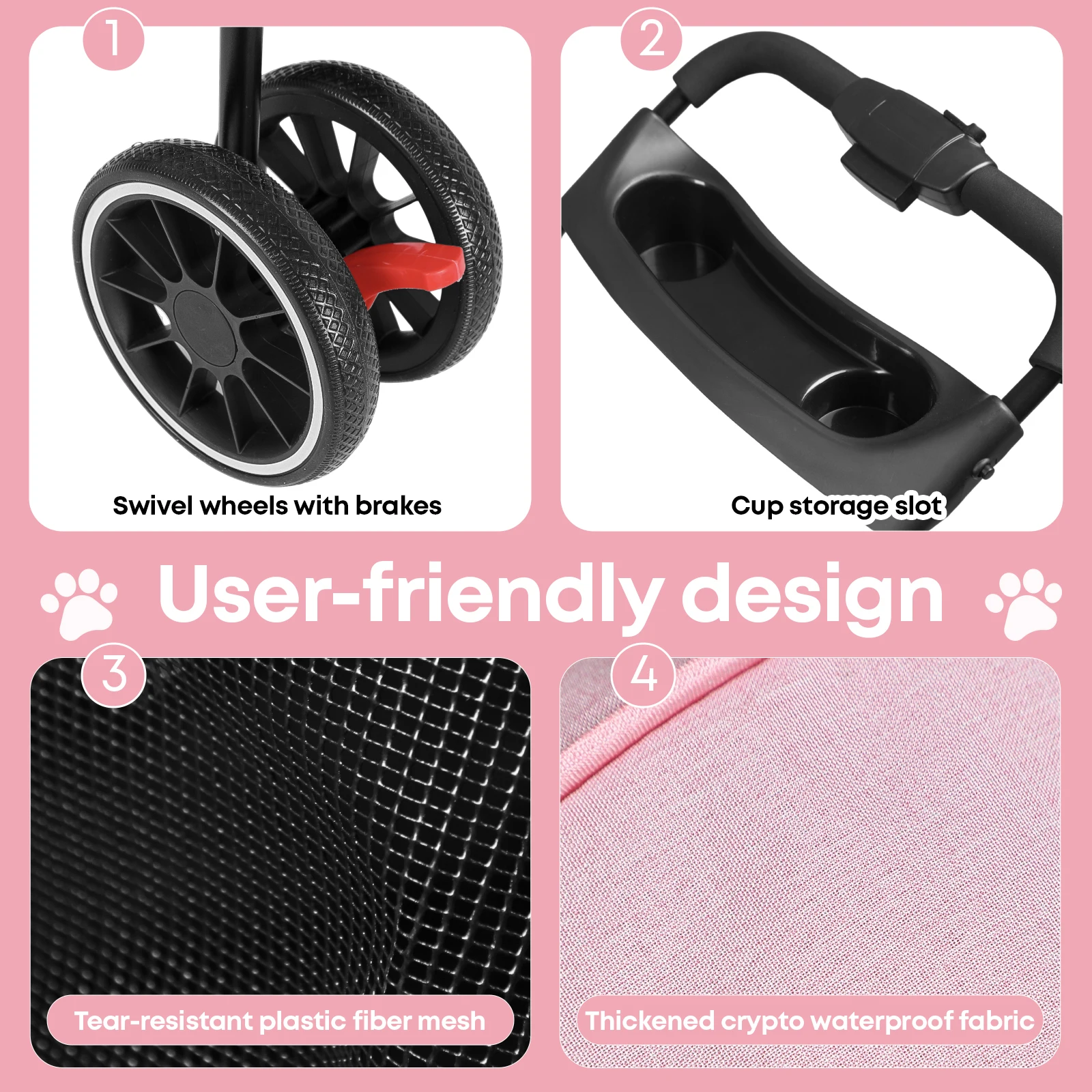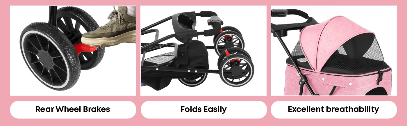 Made from high-density 300D Oxford fabric with a waterproof coating, this stroller helps protect your pet from light rain and spills. It is built for repeated everyday use and travel.