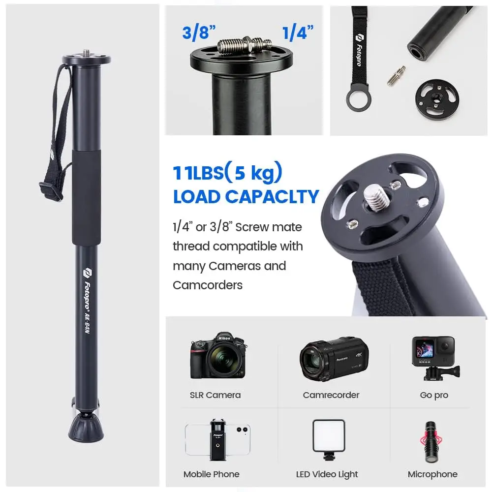 - Universal 1/4″ & 3/8″ Screw Mount: Compatible with DSLR cameras, camcorders, GoPro, mobile phones (with adapter), video lights, microphones, and more