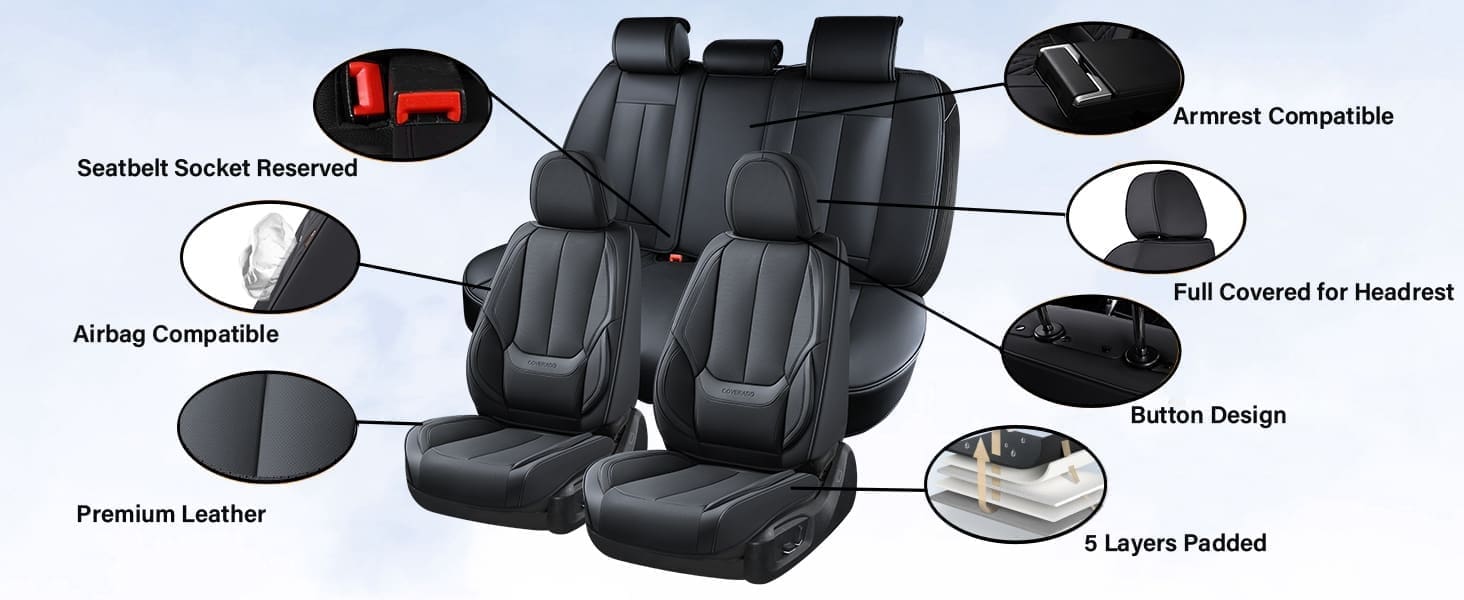 UNIVERSAL FIT—This is a full set of car seat covers. Each pack comes with 2 front seat covers and 3 back seat covers, which are compatible with most cars, SUVs, trucks, and pickups. Tips: Please measure the size of your seat before buying to avoid incompatibility.