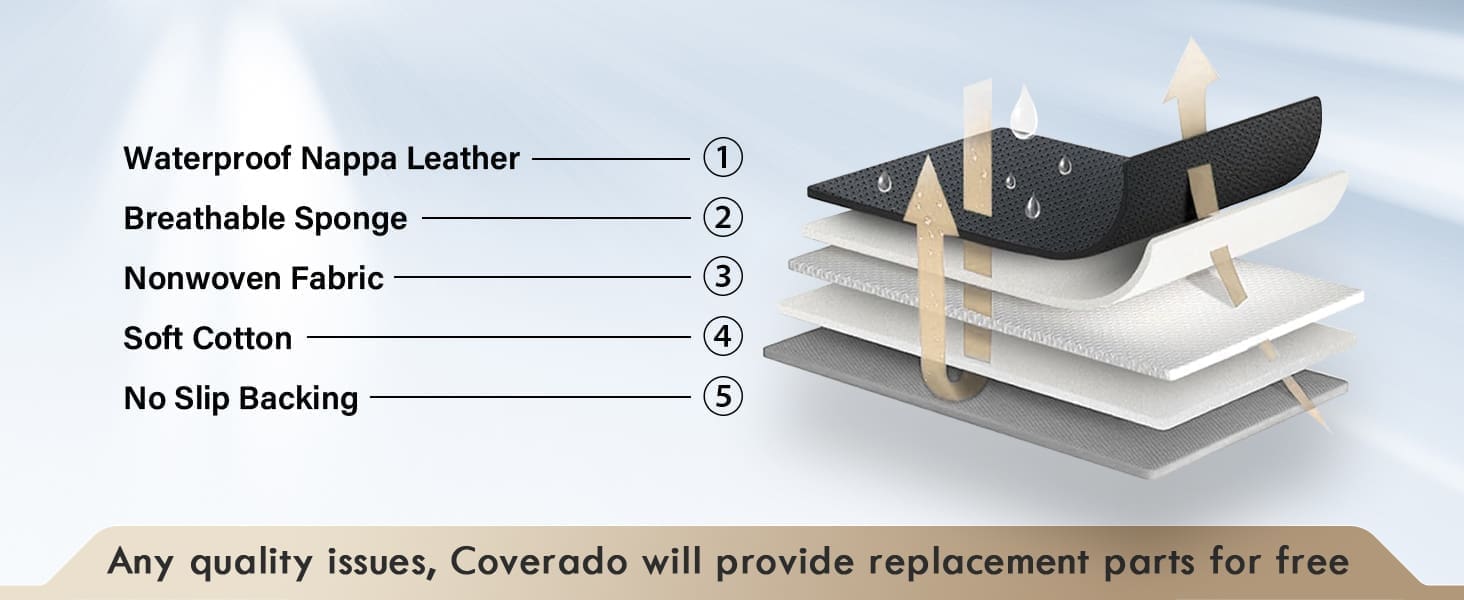 SUPERIOR PROTECTION – Crafted from premium NAPPA Leather, the seat covers add great comfort while protecting your seats from spills, stains, pet hair, and harmful UV rays. They are resistant to fading, gentle to the touch, waterproof, breathable, and made to last.