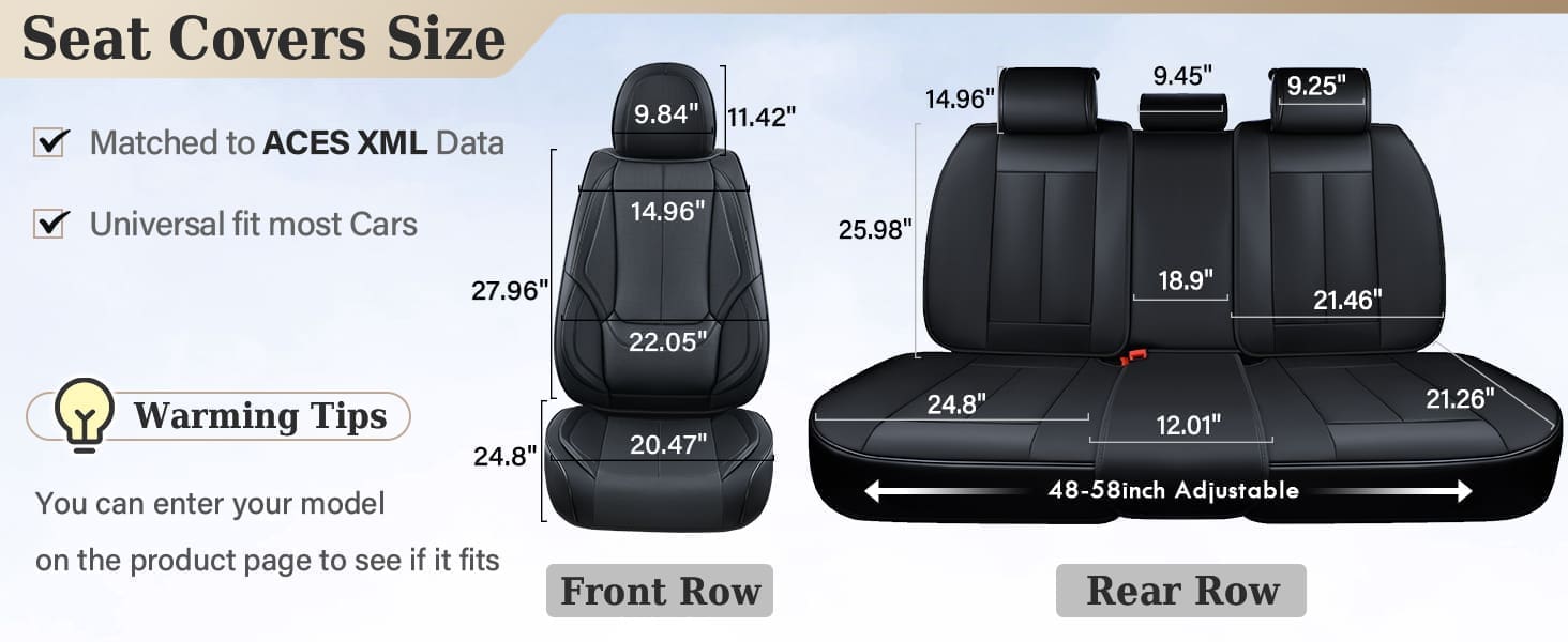 Warm Tip: It is not suitable for all vehicle models. Please check the compatibility details carefully before ordering. If the seat cover is incompatible, contact us for a solution.