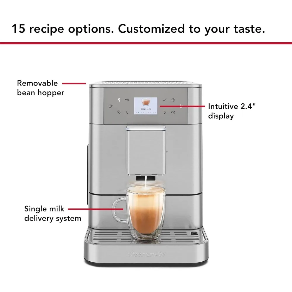 - Create personalized drinks with one touch and choose from 15 recipe options such as Espresso, Americano, Latte, Cappuccino, and more.