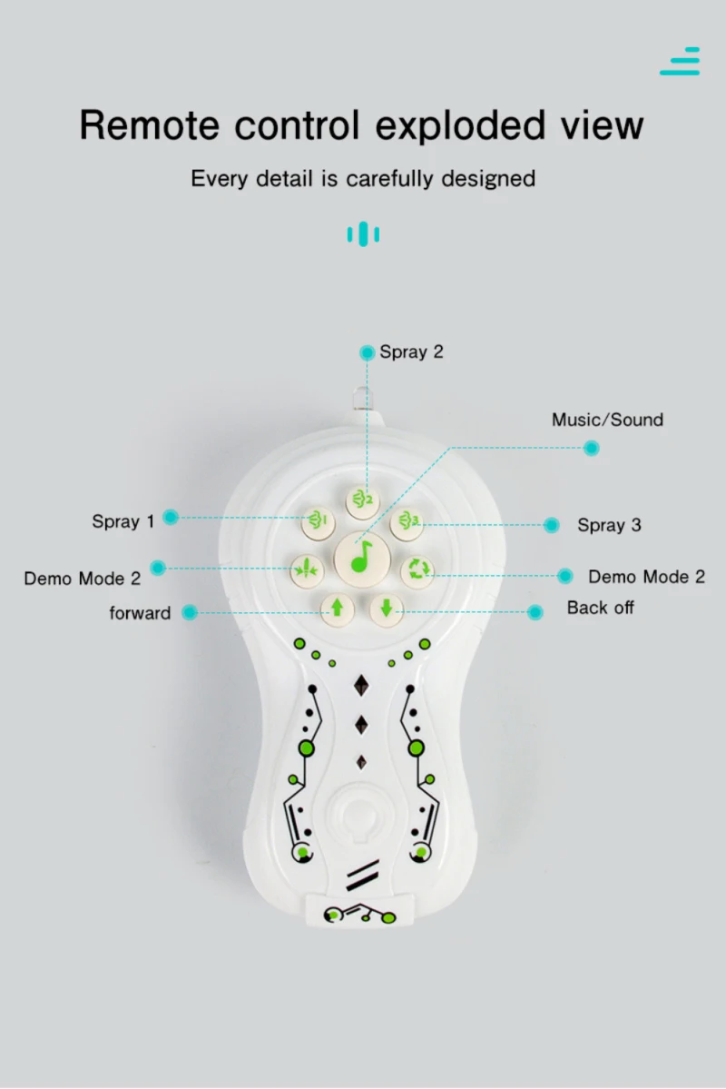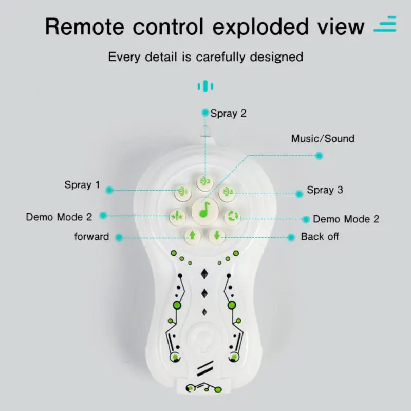 - One Button Demonstration and Bionic Movement: The toy is designed to keep children engaged. With the press of a button, it follows a preset program, crawling on two different tracks, spraying mist, and playing music.