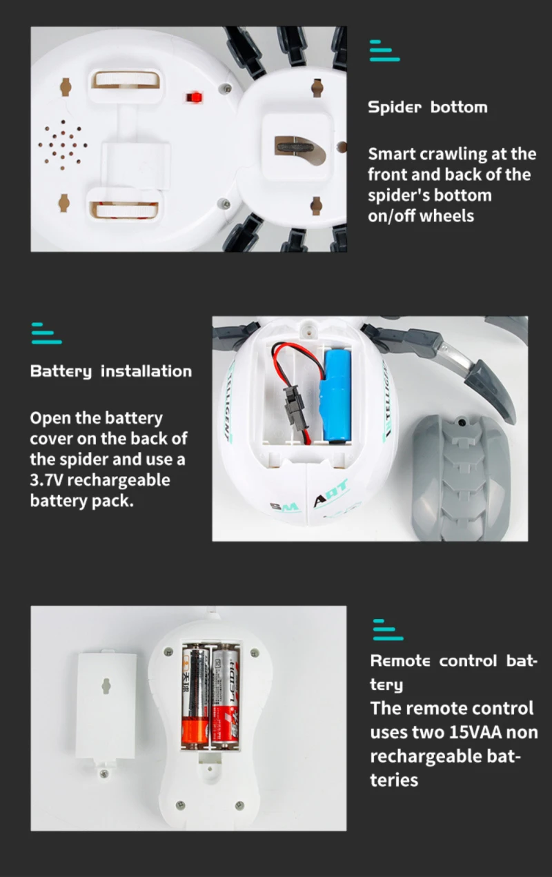 - RC Spider: 1 (Note: 3 AA batteries required for the spider, not included)