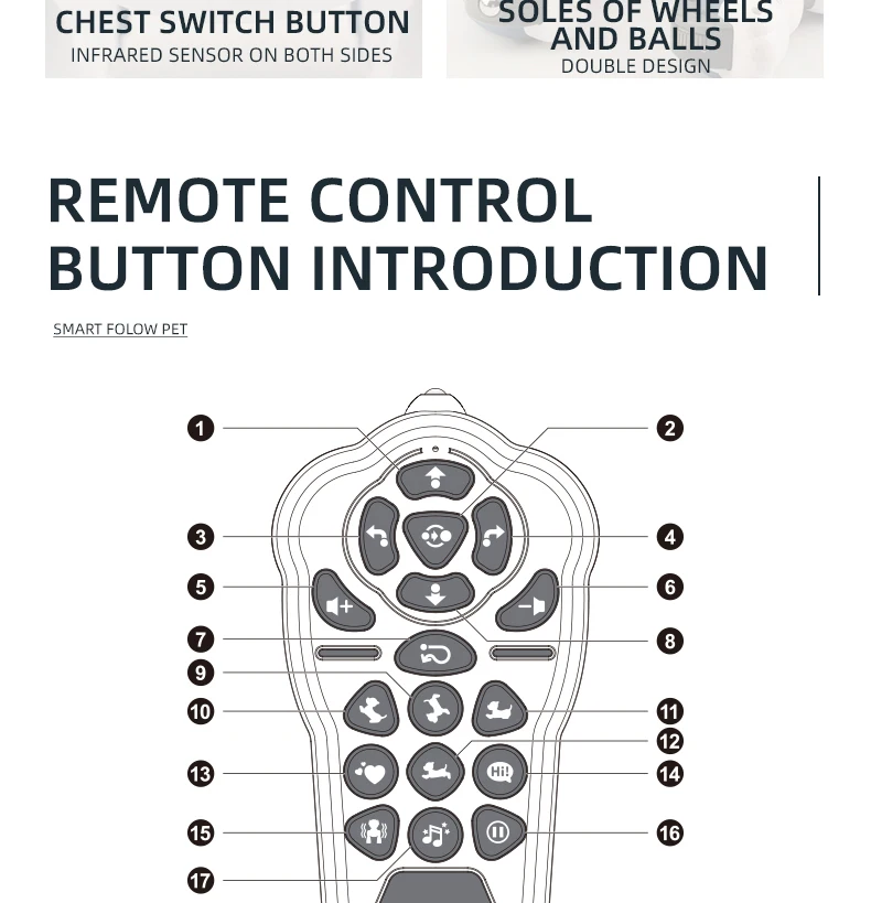 - Follow Mode: Activate the smart “follow†feature and watch as this loyal puppy tracks and trails its owner around the room.