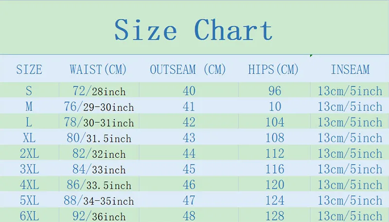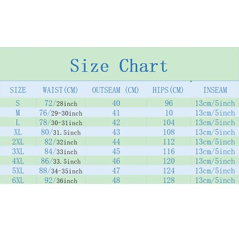 Catering to a wide range of body types, these shorts are available in multiple sizes, from S to 6XL. This ensures a comfortable and flattering fit for everyone, making these shorts a great choice for anyone looking to combine style with comfort.
