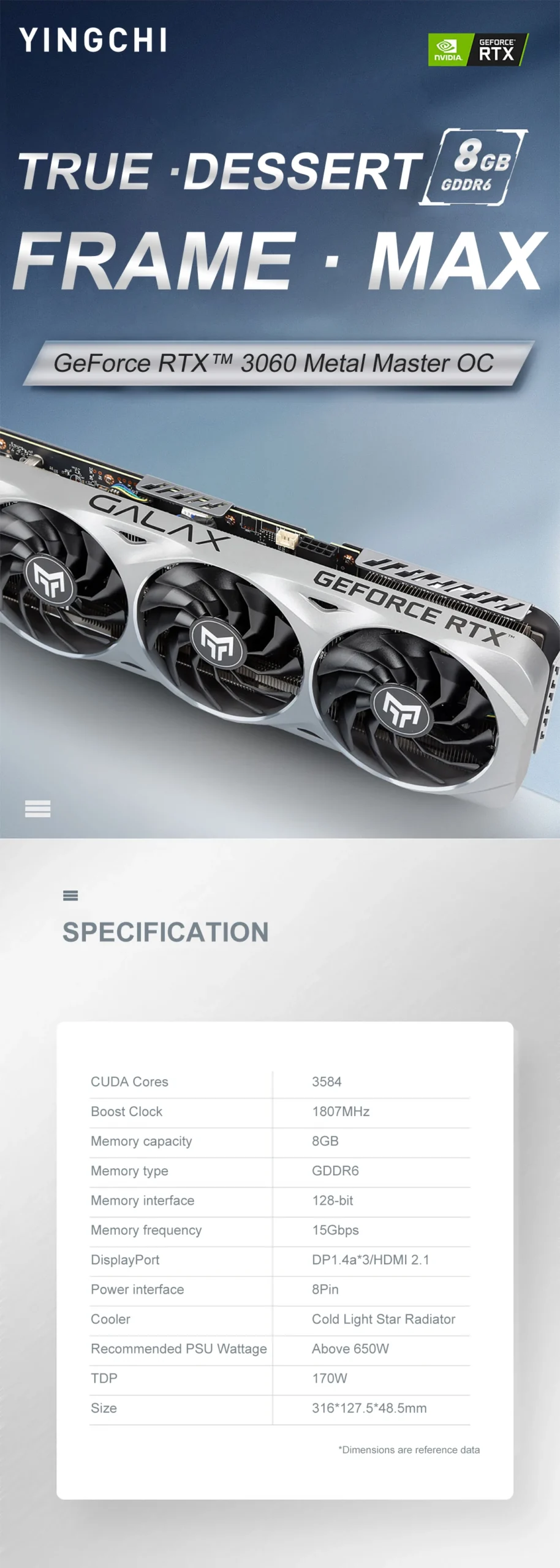 Upgrade your system with the YINGCHI RTX 3060 Metal Master OC and experience next-level gaming today!